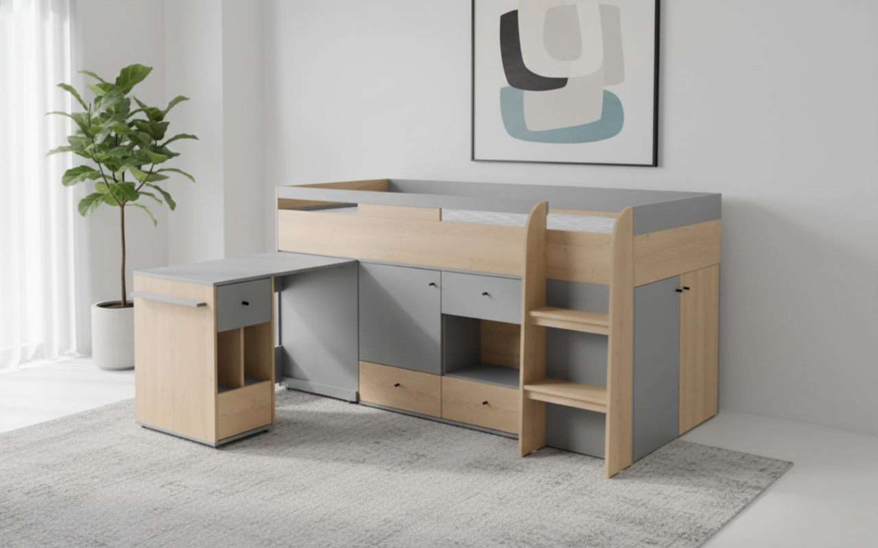 Pri menších izbách sa oplatí siahnuť po multifunkčnom nábytku. Poschodové postele so vstavanými písacími stolmi, policami alebo úložným priestorom pomáhajú efektívne využiť každý centimeter a udržať v izbe poriadok.