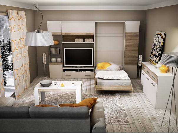 Ideálnym miestom, kam takúto posteľ umiestniť, je obývačka. Najväčšou výhodou sklápacej postele je ušetrený priestor. Využiť ho môžete napríklad ako kútik pre deti alebo na miesto, kde by inak stála posteľ, môžete postaviť pracovný stolík alebo pohovku, ktoré večer jednoducho odsuniete.