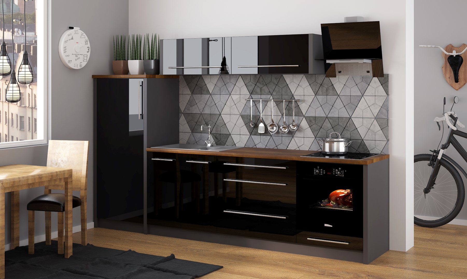 Kuchynské komplety, ktoré sú najlacnejšou variantou z našej ponuky, si radi kupujú zákazníci na chalupy, do kancelárií alebo pre starších ľudí do menších bytov. Nedajú sa vyskladať podľa potreby, avšak vybrať si môžete od dĺžky 1,2 metra do 2,4 metra. Najobľúbenejšie sú Mela, Oliwia a Emma.