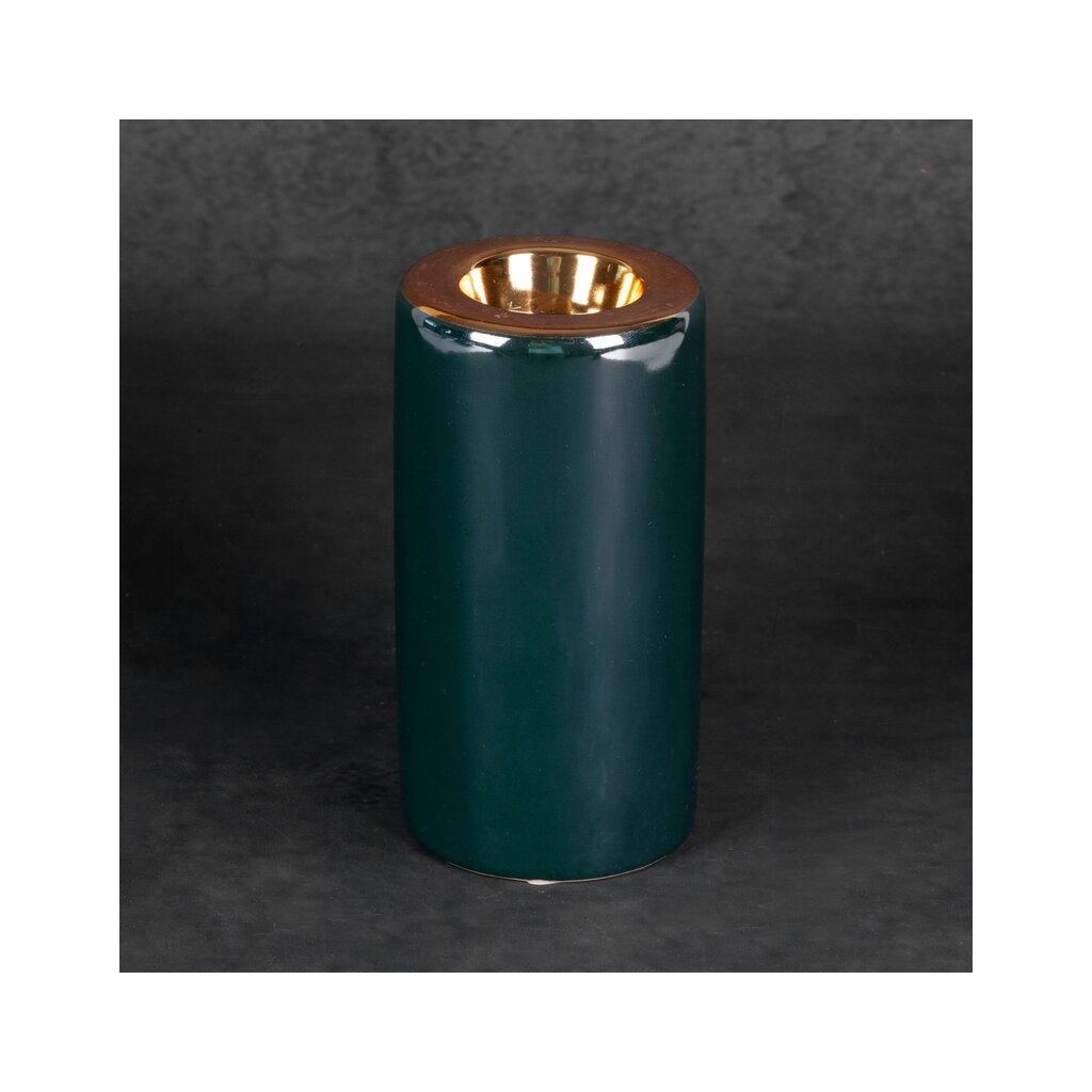 dekoratívny svietnik šírka: O 8 cm, dĺžka: 15 cm, farba: zelená, zloženie: keramická hlina