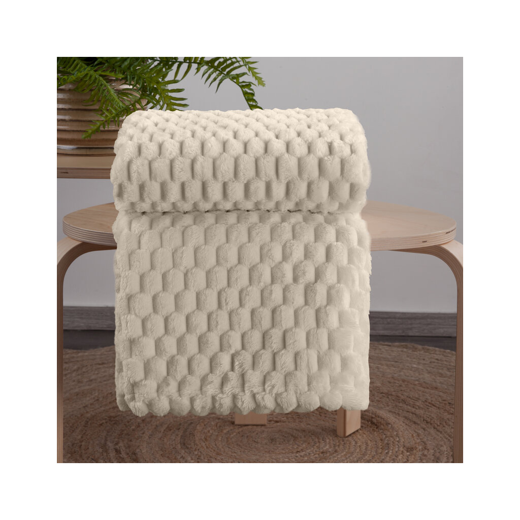 Flano deka veľmi mäkká na dotyk s 3d efektom šírka: 150 cm, dĺžka: 200 cm, farba: béžová, hmotnosť: 260GSM GSM, zloženie: Materiál: 100% polyesterDodatočné parametre