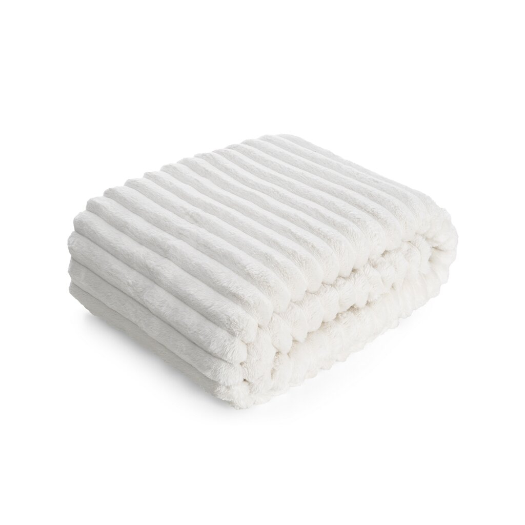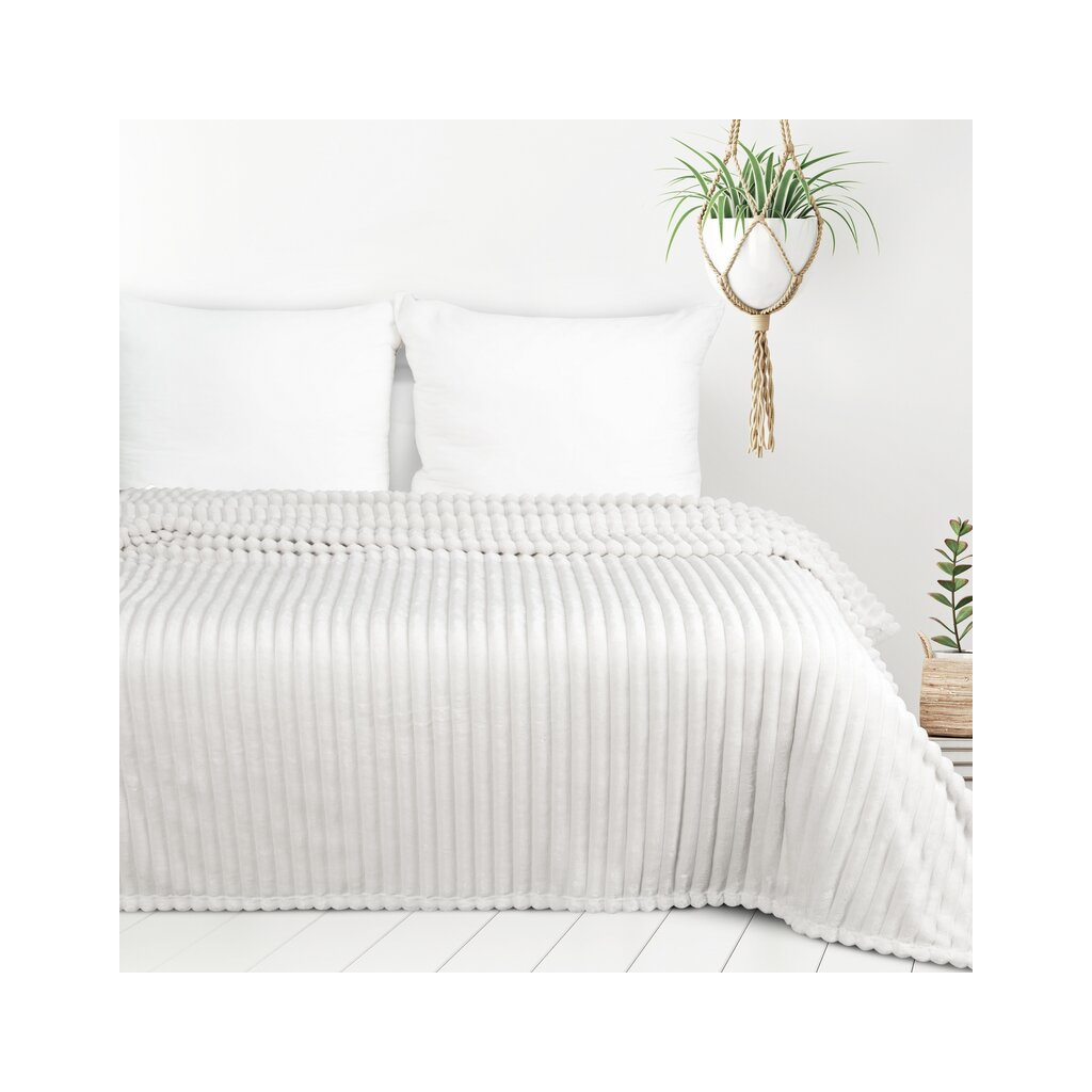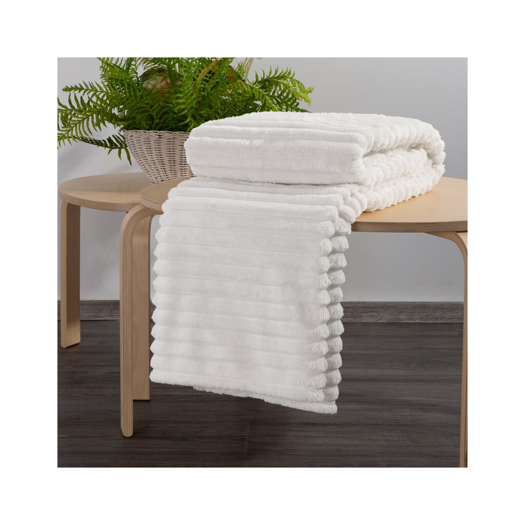Klasická deka z vlákna príjemného na dotyk v technológii mikroflanel. Jednofarebná nadýchaná štruktúra je zdobená minimalistickým reliéfom rybej kosti. šírka: 70 cm, dĺžka: 160 cm, farba: biela, gramáž: 300 GSM, zloženie: Materiál: 100% polyester