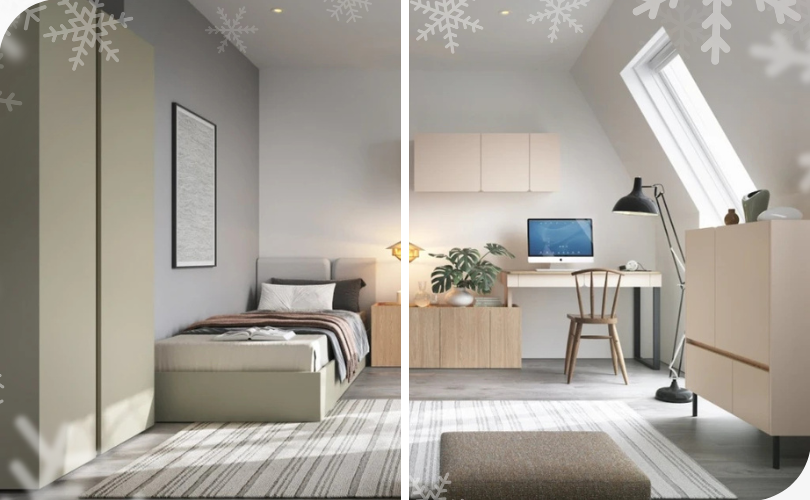 Vianoce sú pre deti najkúzelnejším obdobím v roku, preto by aj detská izba mala žiariť vianočnou atmosférou. S naším zariadením vytvoríte pohodlný a hravý priestor, kde si deti budú užívať sviatky. Štýlové detské postele doplnené o tematické vankúše s vianočnými motívmi a jemným svetielkom nad posteľou vytvoria čarovný priestor. Praktické regále či skrine zaistia, že sa všetky nové hračky a darčeky rýchlo uskladnia, aby si deti mohli užiť poriadok a priestor na hranie.