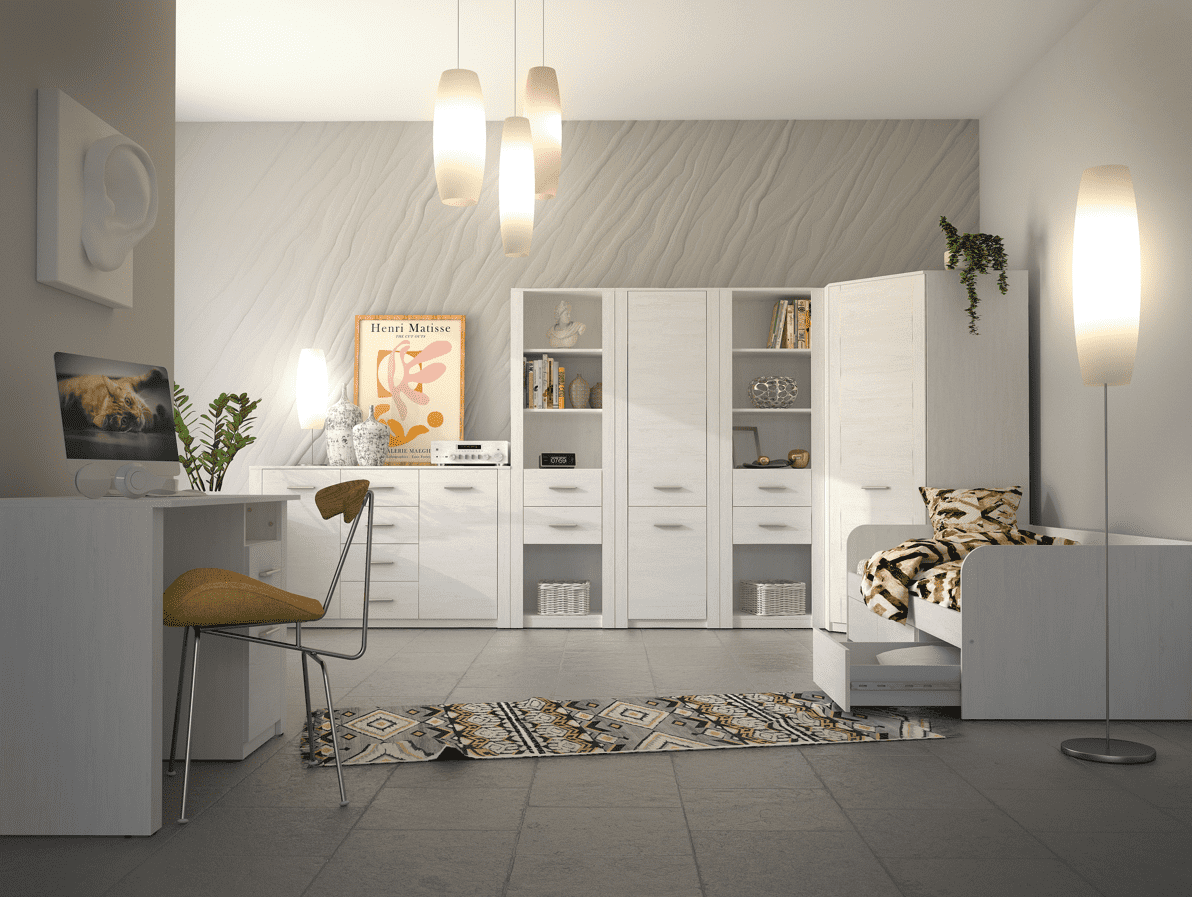 Vytvorte dokonalý priestor pre vaše dieťa s kolekciou MONATA do detskej izby v dekore borovica andersen a jednoduchých tvaroch. Jemná detská kolekcia nie je len esteticky príťažlivá, ale tiež ponúka praktické riešenia pre moderné rodiny, ktoré kladú dôraz na funkčnosť a štýl. Neutrálna farba a jednoduché tvary vytvárajú svetlý a vzdušný dojem, čím poskytujú ideálnu atmosféru pre hravosť a kreativitu. Vďaka neutrálnemu dizajnu je táto kolekcia ľahko kombinovateľná s ďalšími farbami a doplnkami, čo vám umožní prispôsobiť detskú izbu meniacim sa vkusom a potrebám vášho dieťaťa. Umožnite svojim deťom rásť v prostredí, kde sa budú cítiť pohodlne a útulne.