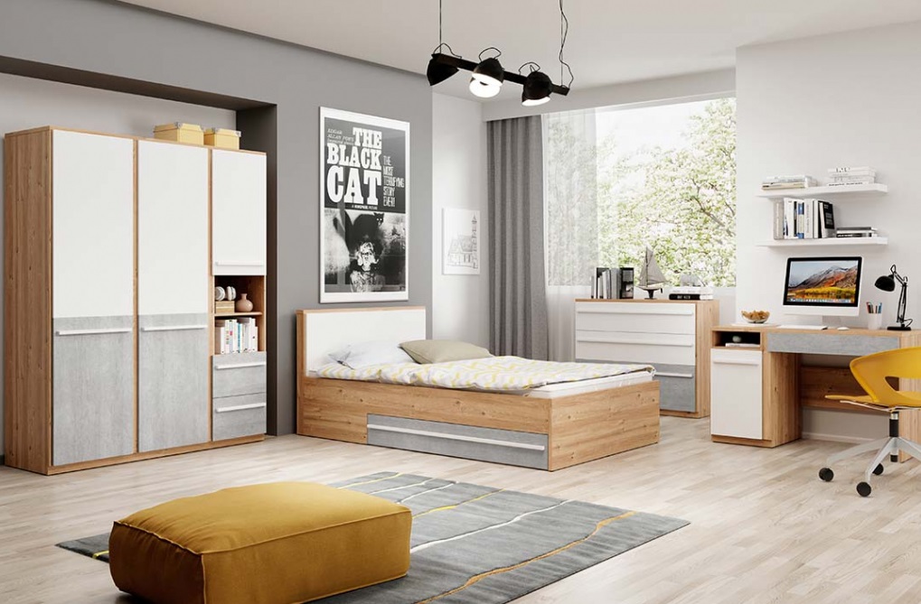 Kolekcia nábytku PALMER, predstavuje moderný dizajn, spojený s výnimočným štýlom. Nábytok je vyrobený z kvalitného materiálu a zároveň ponúka praktické prevedenie a neodolateľný vzhľad. Charakteristickým znakom nábytku je jeho nadčasové farebné prevedenie, ktoré sa bude páčiť ako dievčatám, tak aj chlapcom, a aj originálne úchytky. Kolekcia obsahuje viacero segmentov, vďaka ktorým vytvoríte úžasnú študentskú izbu, v ktorej budú Vaše deti radi tráviť nielen čas učenia, ale aj čas oddychu.