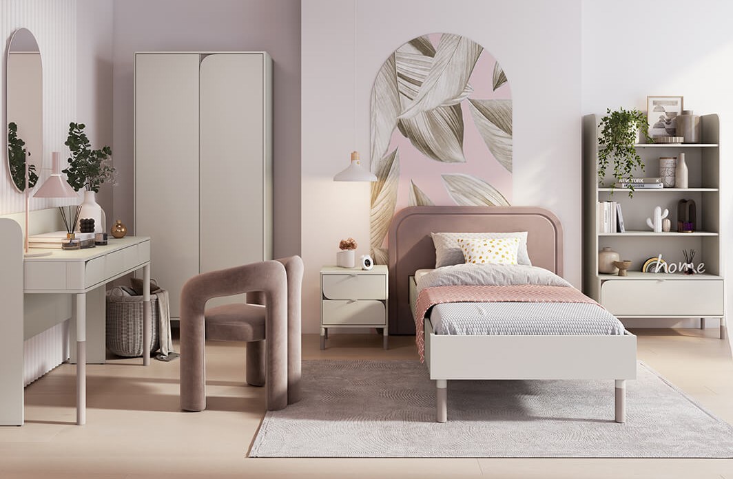 Očarujúca a praktická izba SYMPATHY v atraktívnom a modernom dizajne bola navrhnutá tak, aby splnila očakávania dieťaťa aj rodičov. Nábytok má ABS hrany a kvalitný materiál, ktorý vám zaistí využitie na dlhý čas. S nadčasovým odtieňom Cashmere sa ľahko integruje do každého detskej izby, dodávajúc jej dotyk elegancie a tepla. Vyberte si detský nábytok ktorý je bez úchytiek a doprajte svojmu dieťaťu nielen praktický, ale aj dizajnovo atraktívny kúsok nábytku, ktorý bude krásnou súčasťou jeho priestoru.