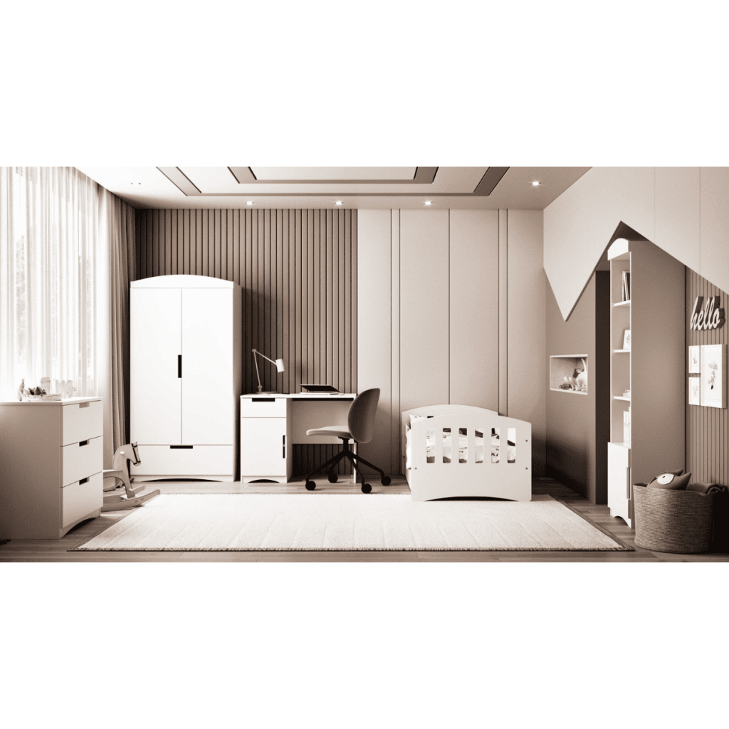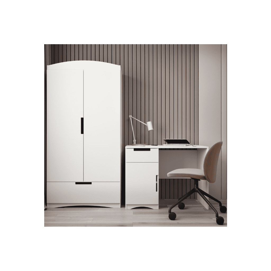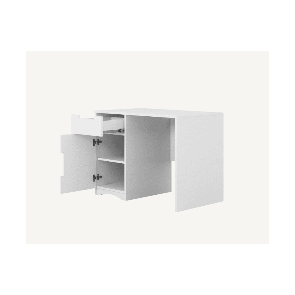 Biely písací stolík CLASSIC je dokonalou voľbou pre školákov a ich rodičov, ktorí hľadajú kombináciu funkčnosti, elegancie a nadčasového vzhľadu. Vďaka svojmu jednoduchému dizajnu a jemnej bielej farbe sa ľahko začlení do akéhokoľvek interiéru. Stolík ponúka priestrannú pracovnú dosku, ktorá poskytuje dostatok miesta na učenie, prácu s počítačom či tvorivé aktivity. Na ľavej strane sa nachádza zásuvka a skrinka, ktoré umožňujú prehľadné uloženie školských potrieb, dokumentov, hračiek alebo výtvarných pomôcok. Tento praktický úložný priestor pomáha udržiavať poriadok a čistý vzhľad pracovného miesta.