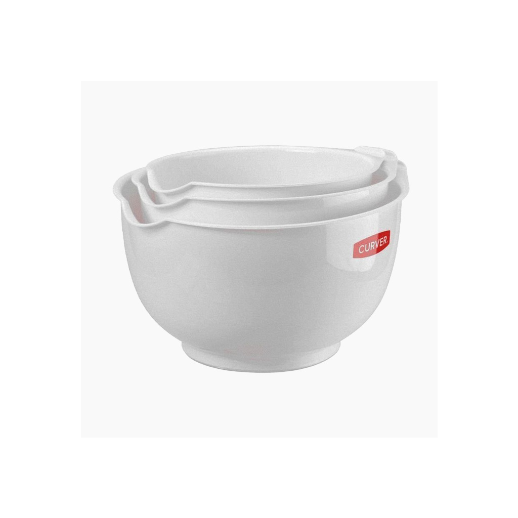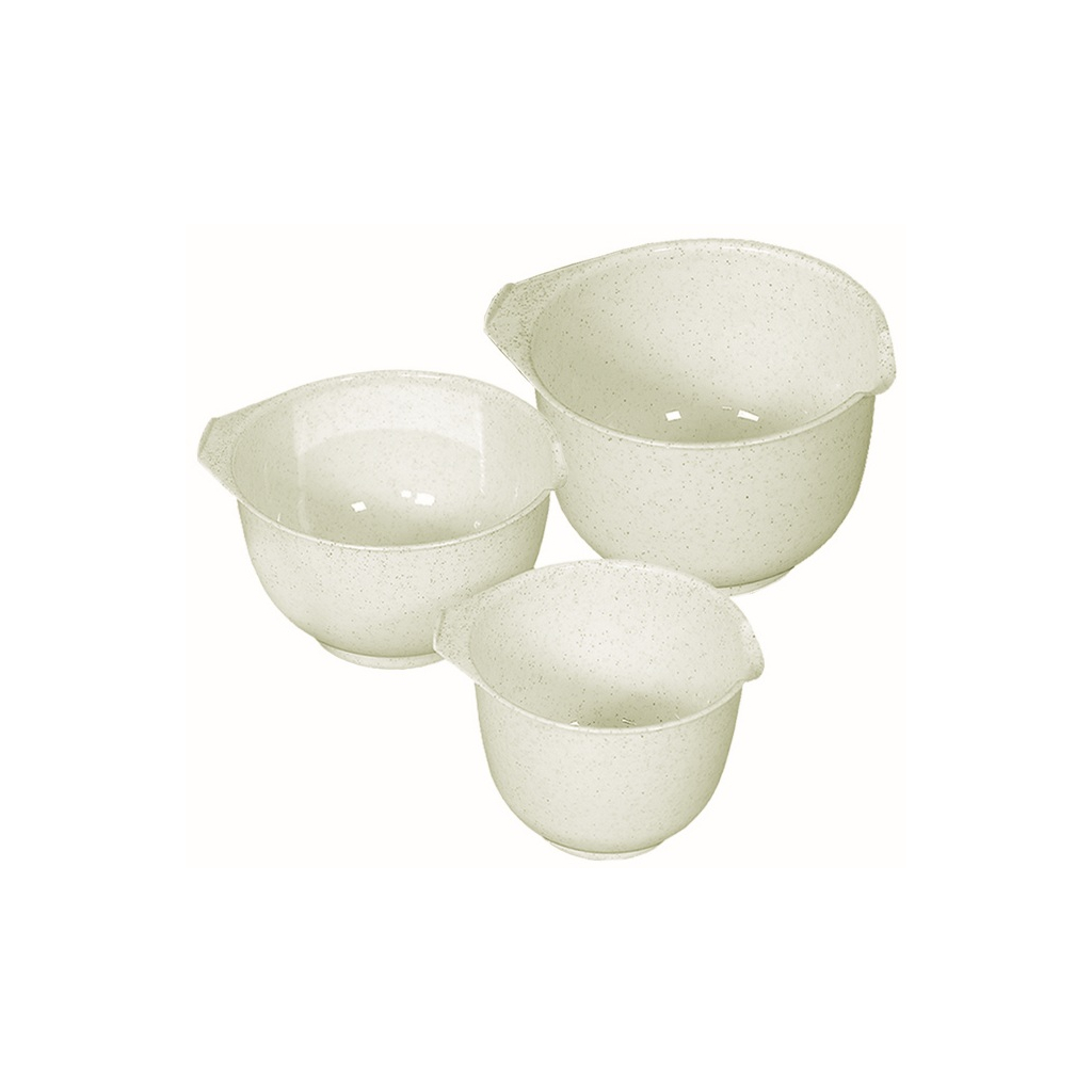 Tri kuchynské misy rôznej veľkosti, sú vhodné na miesenie cesta, mixovanie krému a prípravu rôznych potravín. Ich veľkosť a dizajn sú navrhnuté tak, aby sa bez problému zmestili jedna do druhej a našli si svoje miesto vo vašej kuchyni. Sú ľahké, praktické a dajú sa umývať v umývačke.