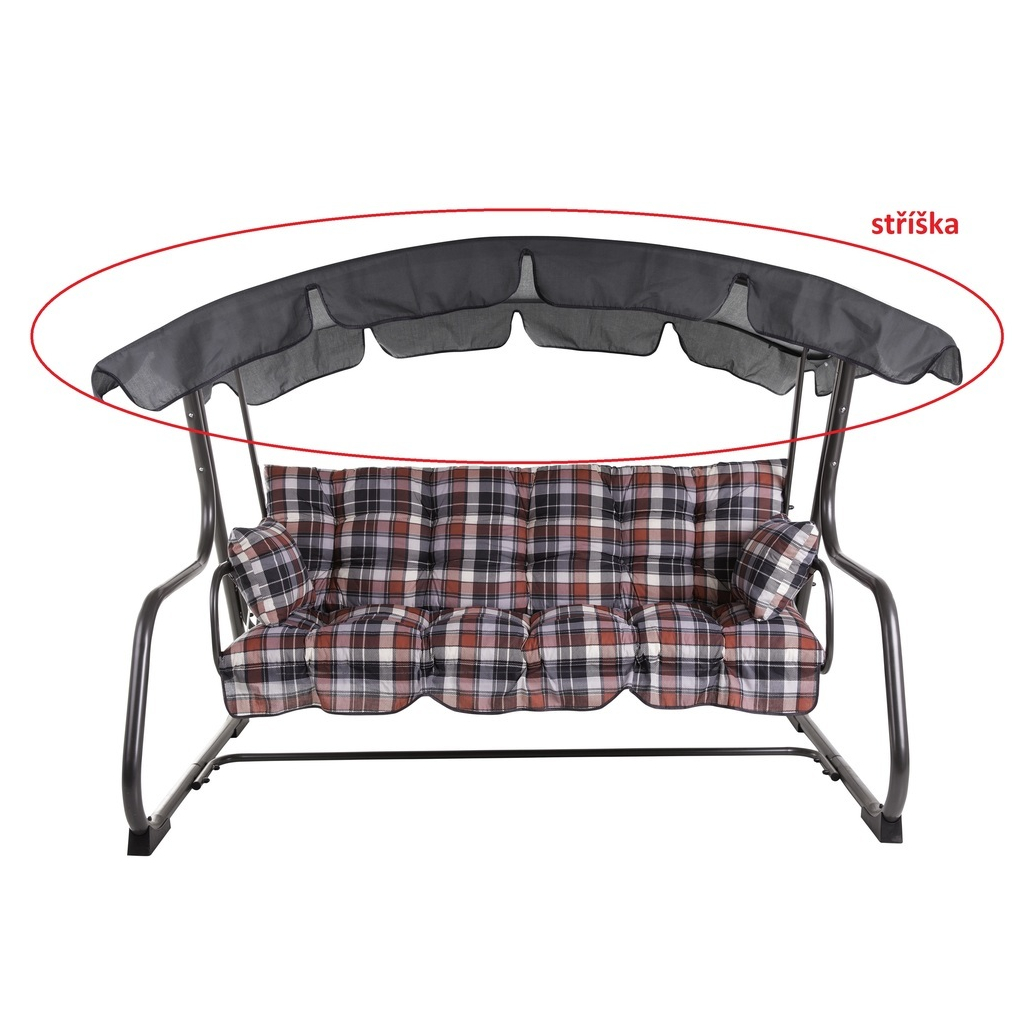 Náhradná strieška k hojdačke RAVENNA v praktickom prevedení. Náhradná strieška je na konštrukciu v rozmere 209 x 118 cm, je vyrobená z polyesteru, okraje sú obšité.