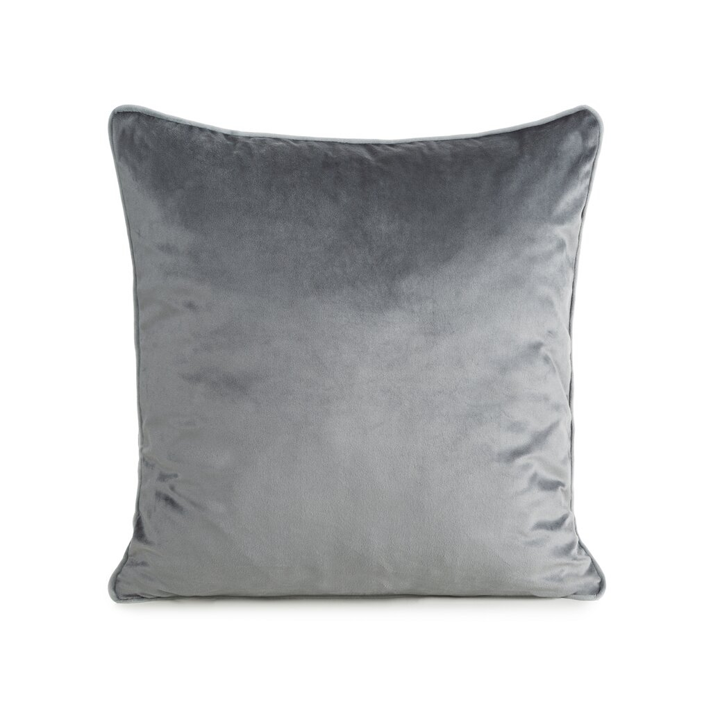 Zamatová obliečka na vankúš zdobená ozdobným lemovaním Hmotnosť: 220 GSM. Rozmer: 60 x 60 cm, Farba: sivá.