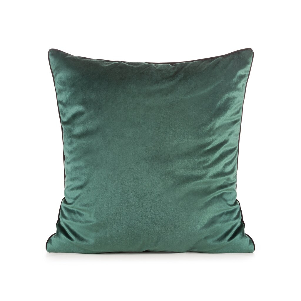 Zamatová obliečka na vankúš zdobená ozdobným lemovaním šírka: 60 cm, dĺžka: 60 cm, farba: tmavozelená, zloženie: Materiál: 100% polyester