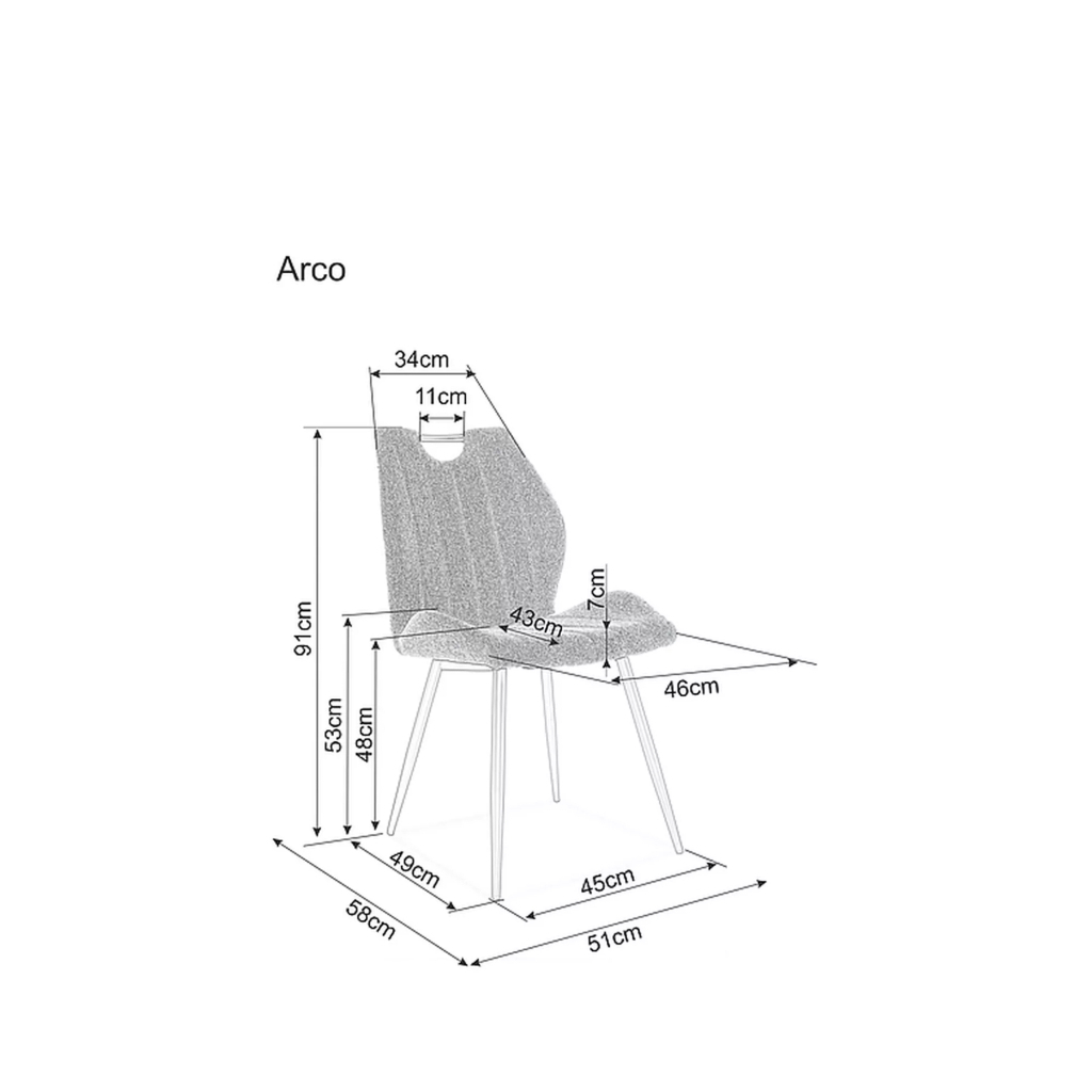 Nadčasový dizajn a kvalitné materiály robia z tejto jedálenskej stoličky ARCO Brego skvelý doplnok pre váš domov. Stolička je vyrobená z kvalitných materiálov v tmavosivej farbe. Čierne kovové nohy dodávajú stoličke moderný nádych a zabezpečujú jej pevnú konštrukciu. Jedálenská stolička bez bočných opierok ponúka neobmedzenú voľnosť pohybu, zatiaľ čo sedadlo a opierka poskytujú optimálne pohodlie počas jedál, rozhovorov a relaxácie.