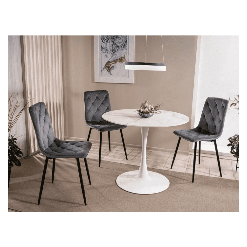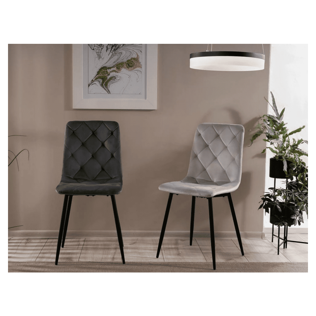 Čalúnená jedálenská stolička JERRY VELVET predstavuje perfektnú kombináciu štýlu a pohodlia, ktorá môže premeniť každú jedáleň na luxusný a útulný priestor. Jedálenská stolička JERRY VELVET sa jednoducho čisti, čo z nej robí praktickú voľbu pre každodenné používanie. Čalúnené jedálenské stoličky poskytujú výnimočný komfort vďaka mäkkému sedadlu a opierke, nohy stoličky sú kovové v čiernej farbe.
