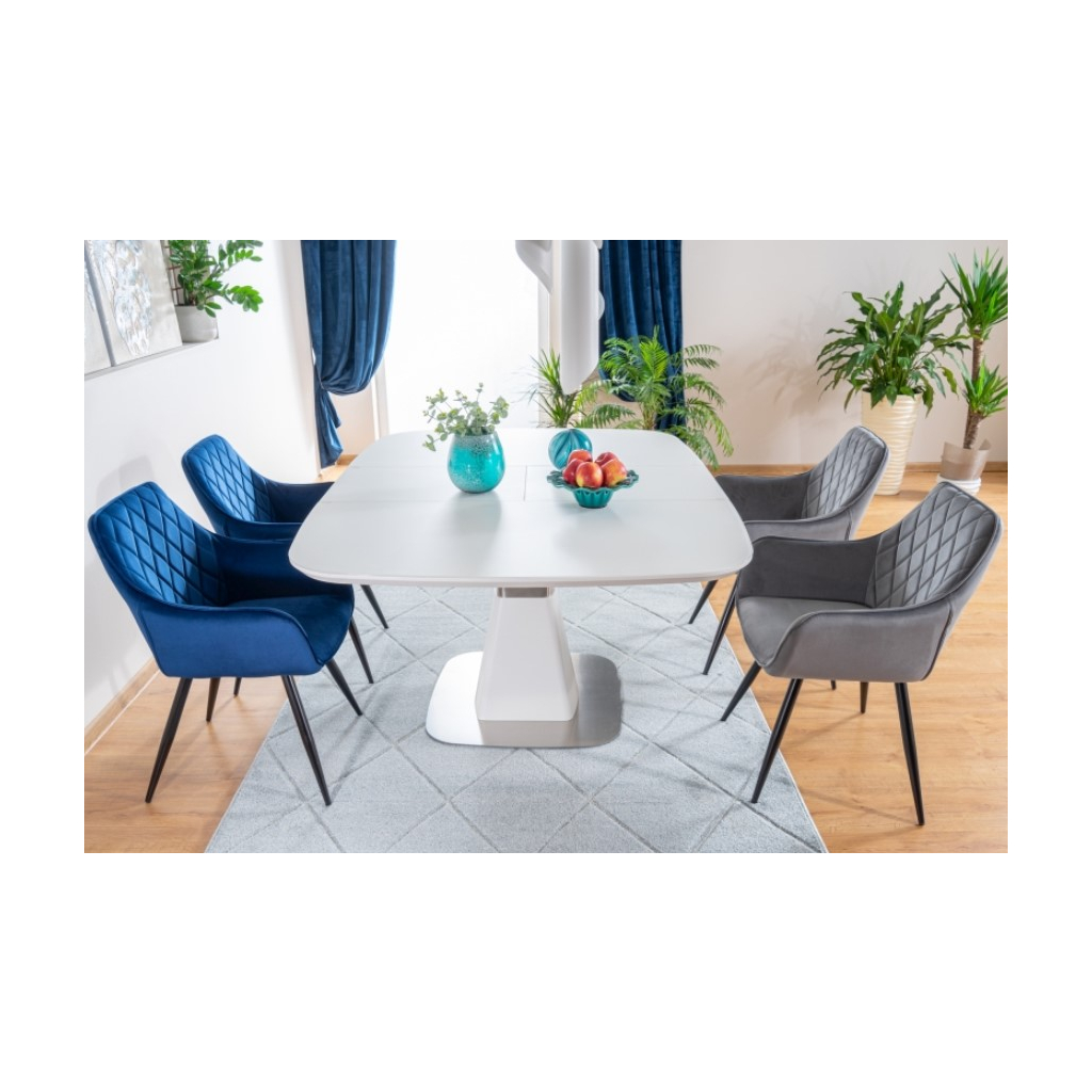 Elegantná modrá stolička LINEA VELVET, ktorá svojím dizajnom zapadne do moderného a zároveň elegantného priestoru. Môžete si vytvoriť útulnú jedáleň alebo elegantnú kanceláriu presne podľa vašich predstáv. Jedálenská stolička LINEA VELVET ma prešívané operadlo. Nohy stoličky sú kovové v nádhernej čiernej farbe. Látka je príjemná na dotyk.