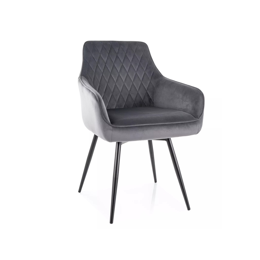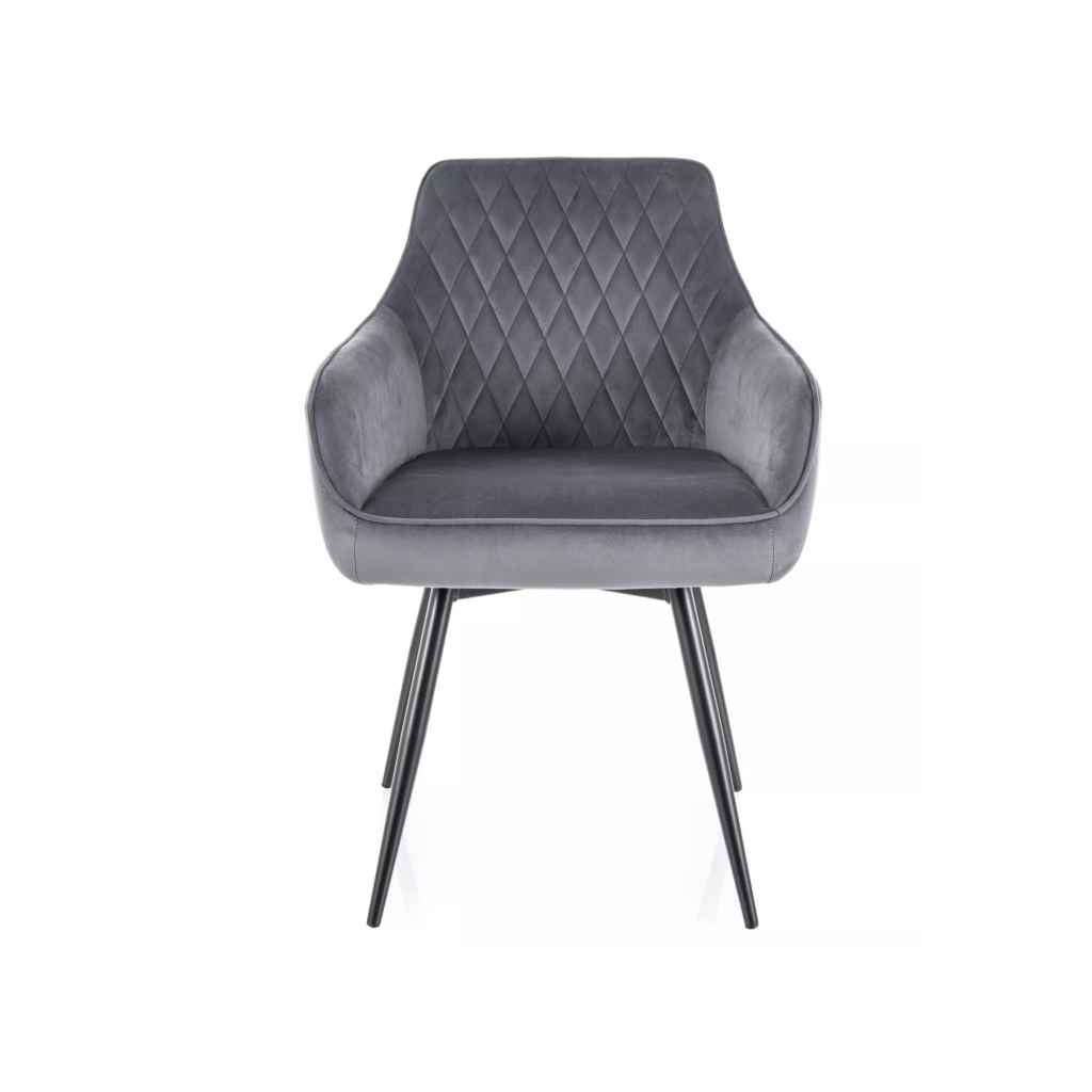 Skvelá jedálenská stolička MARLO VELVET vyčarí kúsok elegancie vo vašej jedálni alebo pracovni. Vďaka prešívanému operadlu a pohodlným podrúčkam budete mať zaručené dokonalé sedenie a relax. Sedenie je extrémne pohodlné vďaka taštičkovým pružinám v sedáku. Veľkou výhodou je aj funkcia Auto-return, čo je sedadlo otočné o 180 stupňov, s funkciou návratu do pôvodnej polohy. Nohy stoličky sú kovové v elegantnej čiernej farbe. Výborne sa hodí do každého moderného interiéru.