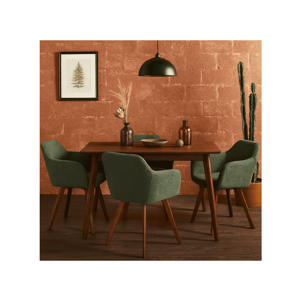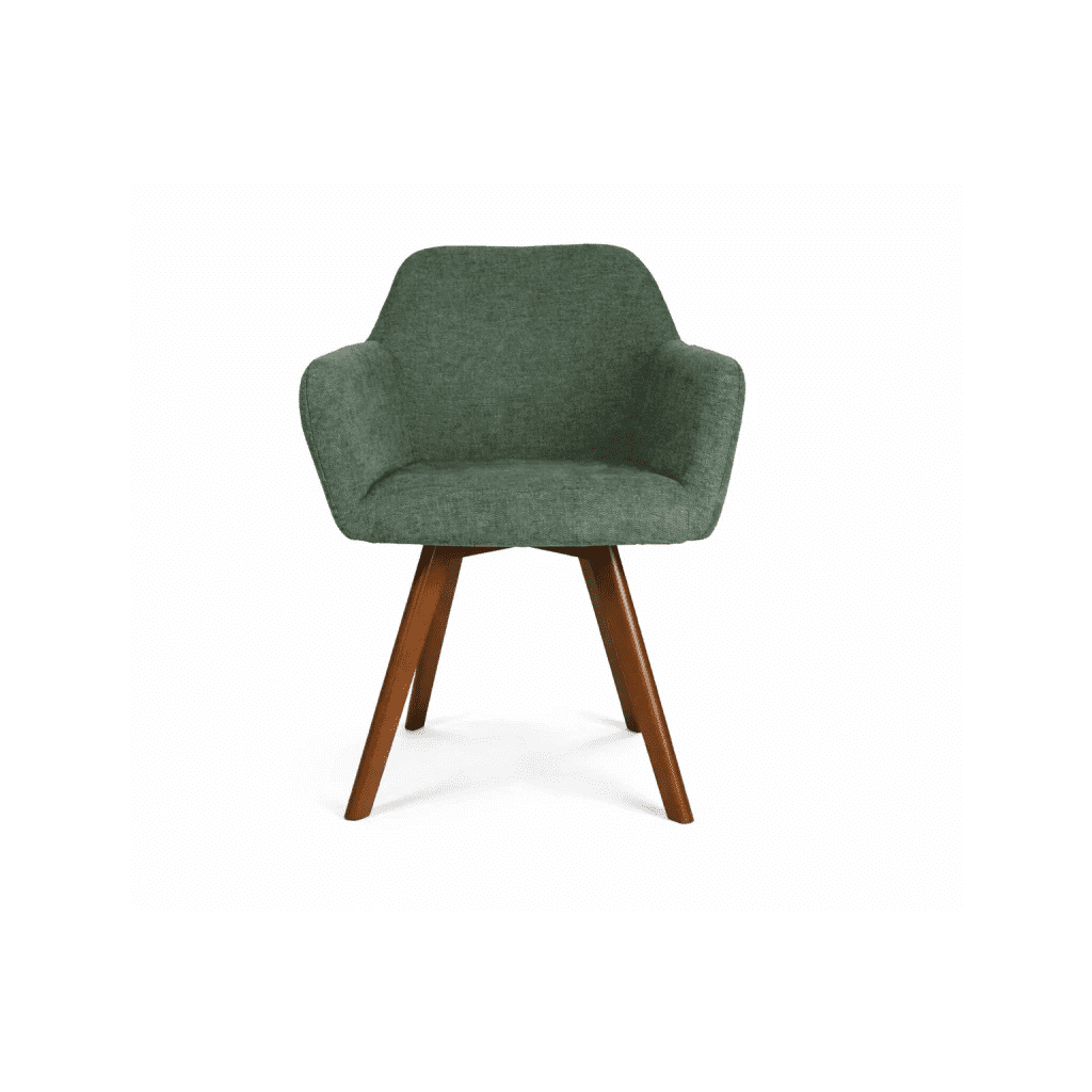 Dizajnová jedálenská stolička OLIVIA v originálnom zelenom odtieni prináša do interiéru pocit tepla, elegancie a nadčasového štýlu. Jej mäkké čalúnenie v kombinácii s masívnymi dubovými nohami vytvára harmonický kontrast, ktorý sa skvelo hodí do moderných, škandinávskych aj prírodne ladených interiérov. Ergonomicky tvarované operadlo a integrované podrúčky poskytujú vysoký komfort pri sedení, či už pri rodinných obedoch, pracovných stretnutiach alebo dlhších večeroch pri stole. Príjemne polstrovaný sedák zabezpečuje pohodlie aj pri dlhodobom používaní, vďaka čomu je stolička OLIVIA ideálnou voľbou do jedálne, obývačky aj domácej pracovne. Stabilné nohy z masívneho dubového dreva zaručujú výnimočnú pevnosť, dlhú životnosť a prirodzený vzhľad.