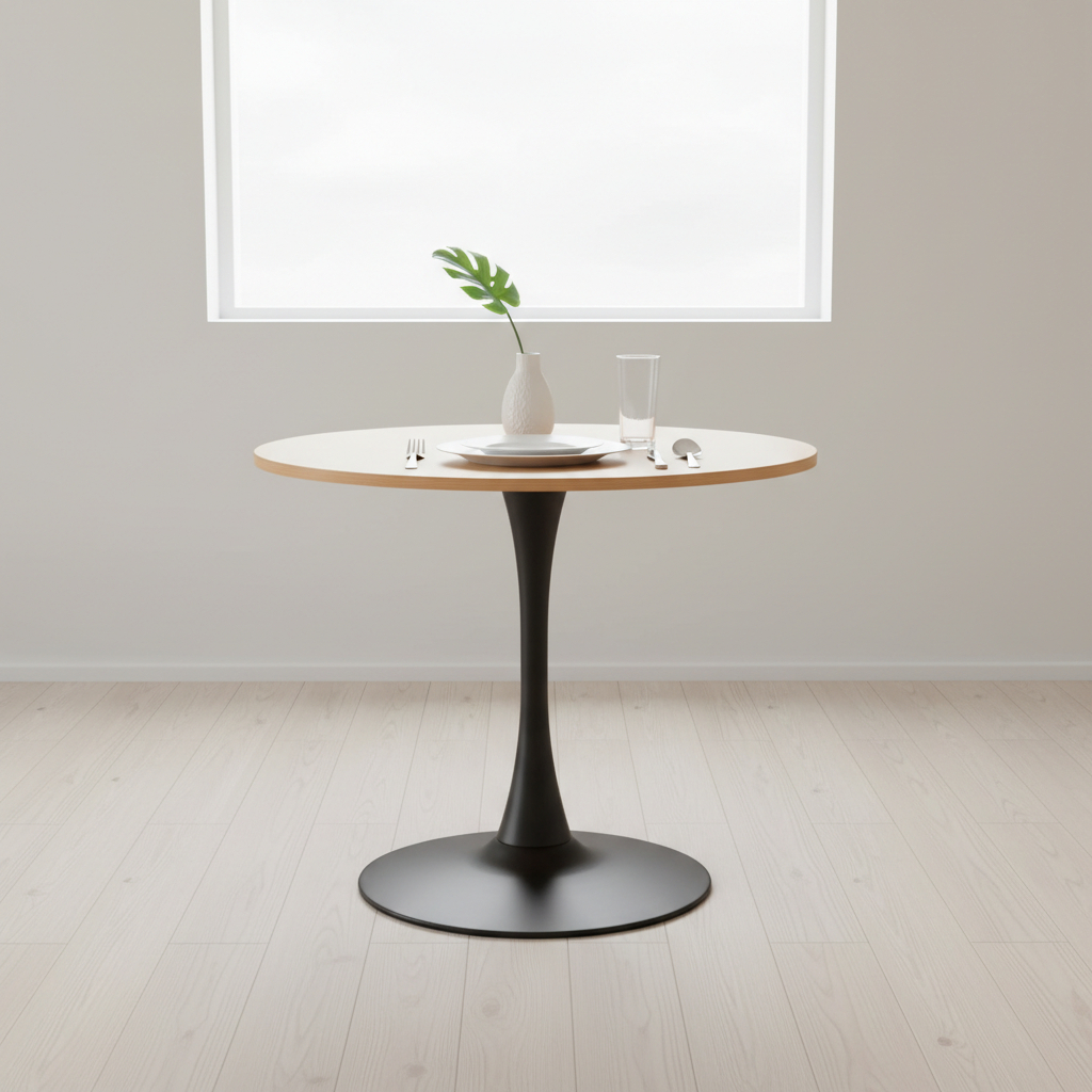 Stôl je vyrobený z kvalitnej MDF dosky, ktorá je odolná voči poškodeniu, vlhkosti a vysokej teplote. Kovová noha zaručuje nielen nadčasový vzhľad, ale aj stabilitu celého stola.