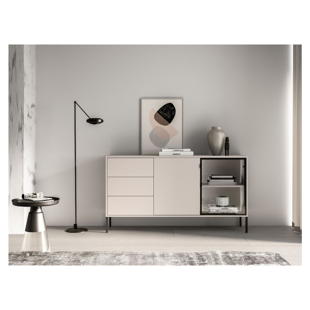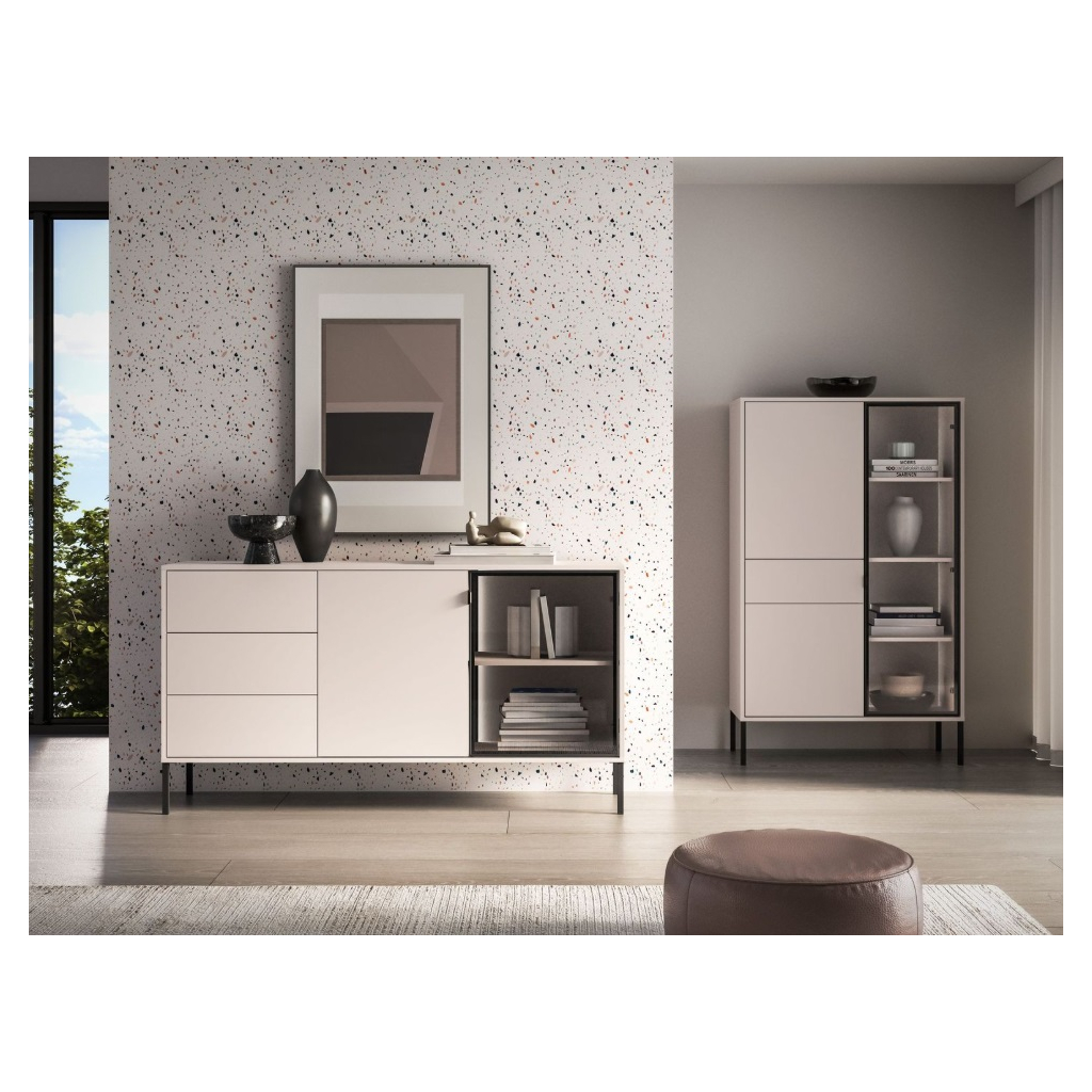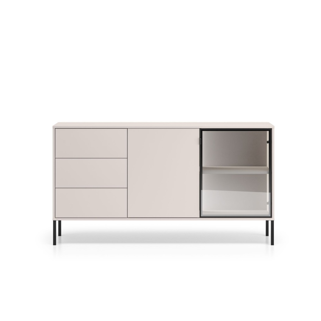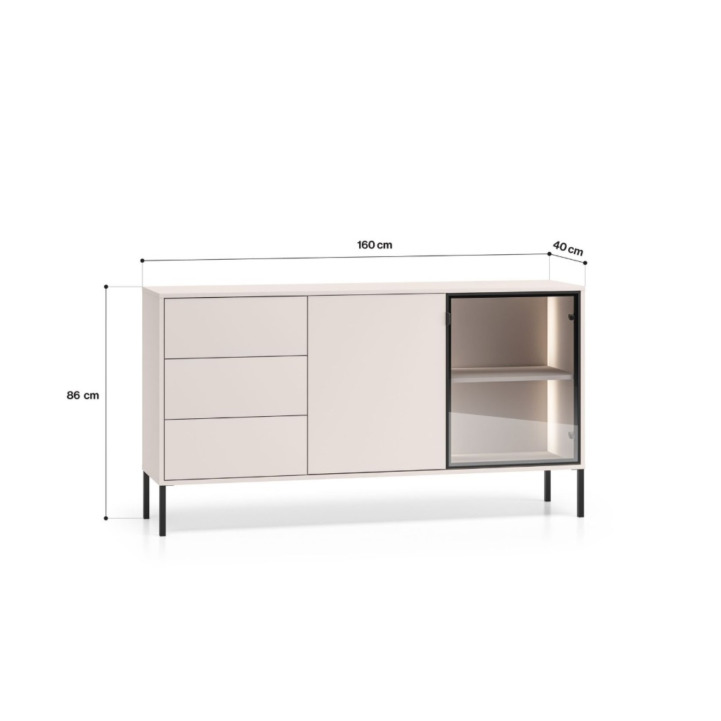 Komoda ABEREN 02 vo farebnom prevedení cashmere prináša moderný nábytok s čistými líniami, elegantnými detailmi a praktickými riešeniami. Kombinácia hliníkového rámu v čiernej farbe s tvrdeným sklom, kovových prvkov a jemného LED podsvietenia vytvára sofistikovaný vzhľad, ktorý dodá obývačke či spálni jedinečnú atmosféru. Ideálna voľba pre tých, ktorí hľadajú štýl, funkčnosť a nadčasový dizajn v jednom. Komoda je priestranná so zásuvkami a vysokými nohami, ktoré sú vhodné pre robotický vysávač.