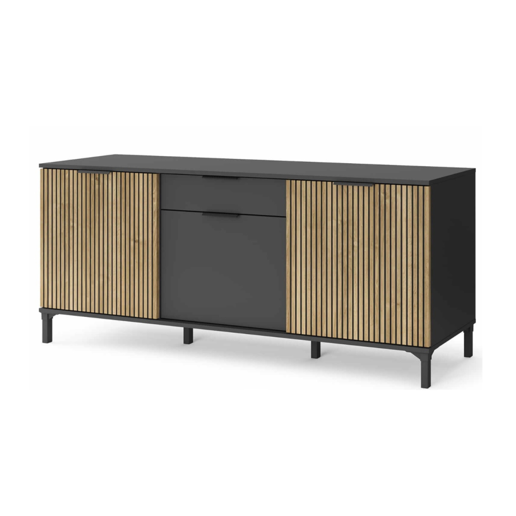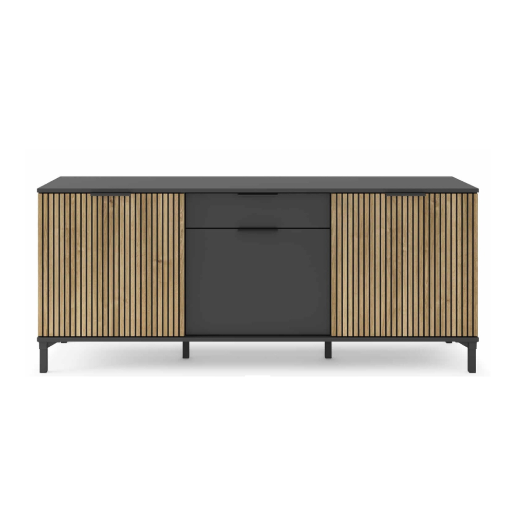 Komoda KIOTO 01 je funkčný kus nábytku s moderným, usporiadaným dizajnom, ktorý sa výborne hodí do obývačky, jedálne alebo domácej pracovne. Jednoduchý tvar spája estetiku s praktickým prístupom k úložnému priestoru a ponúka miesto na väčšie vybavenie aj drobné doplnky. Široká vrchná doska môže slúžiť aj ako dodatočný odkladací priestor. Komoda má tri dvierka a jednu zásuvku, ktoré umožňujú prehľadné rozdelenie vnútorného priestoru. Za dvierkami sa nachádzajú tri police vhodné na uloženie riadu, textílií, dokumentov či iných domácich potrieb. Zásuvka je praktická na drobnosti, ktoré chcete mať vždy poruke, a pomáha udržiavať poriadok pri každodennom používaní.