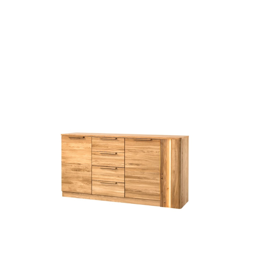 Komoda LONDON 46 z masívneho dreva je dokonalým príkladom toho, ako môže prírodný materiál premeniť interiér na miesto s dušou. Vyniká luxusným vzhľadom a precíznym spracovaním, ktoré z nej robí nadčasový kúsok vhodný do moderného aj klasického priestoru. Pánty s tichým zatváraním zabezpečujú pohodlné používanie bez rušivého hluku, vďaka čomu komoda pôsobí rovnako luxusne, ako vyzerá. Jedinečnou súčasťou je aj integrované LED osvetlenie, ktoré vytvára príjemnú atmosféru v miestnosti. Teplé svetlo krásne zvýrazní štruktúru dreva a prinesie do vášho domova pocit útulnosti a harmónie ideálne na večerný oddych. Komoda je dvojdverová so zásuvkami a dvomi policami.