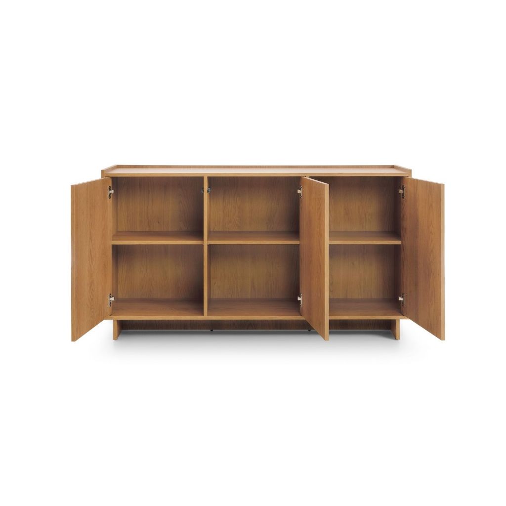 Táto kolekcia nábytku SAMAYA v prevedení dub caramel prináša harmonické spojenie moderného dizajnu a príjemného prírodného vzhľadu. Vyznačuje sa vyváženými proporciami, hladkými plochami a teplým odtieňom dreva, ktorý zútulní každý interiér. Vďaka svojmu minimalistickému štýlu sa ľahko kombinuje s rôznymi typmi zariadenia a je ideálnou voľbou pre moderné aj nadčasové bývanie. Komoda SAMAYA K147 je priestranná, trojdverová s tromi policami.