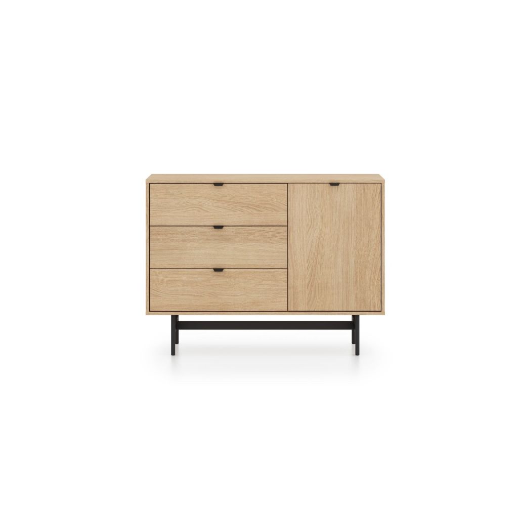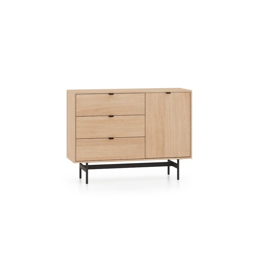 Komoda SORENY 04 je navrhnutá pre moderné interiéry, v ktorých sa spája elegantný dizajn, jednoduchosť a funkčnosť. Dekor dub Mavelie Natural prináša do priestoru prirodzený a teplý vzhľad, zatiaľ čo minimalistická forma dodáva nábytku nadčasový charakter. Nábytok je postavený na ľahkej kovovej konštrukcii, ktorá mu dodáva vzdušnosť a moderný vzhľad. Praktickosť nábytku zvyšujú funkčné riešenia, ako sú plnovýsuvné zásuvky, systém push-to-open a pánty s tichým dovieraním, ktoré zabezpečujú pohodlné a tiché používanie. Komoda je určená na zariadenie obývacej izby aj spálne, vďaka čomu umožňuje vytvoriť jednotný a harmonický interiér v celom byte.