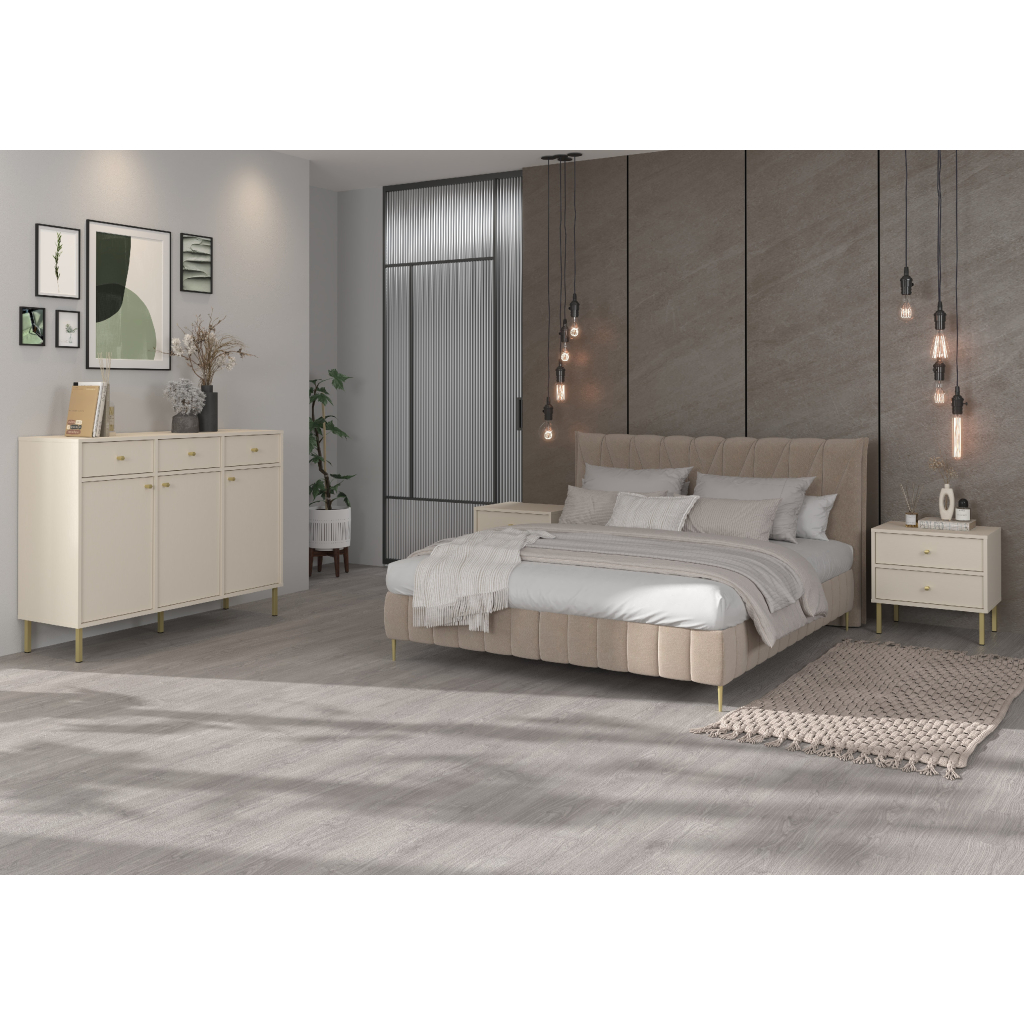 Pekné zlaté kovové úchytky, dokonalé línie, atraktívny a moderný dizajn, to a oveľa viac je typickým znakom komody YEDDO 1F3S / béžová. Komoda stojí na pekných kovových nožičkách, ktoré umožňujú robotickým vysávačom dostať sa do každého kúta. Komoda je tiež vyrobená z kvalitného a odolného materiálu, vďaka čomu je praktickou voľbou do každej domácnosti.