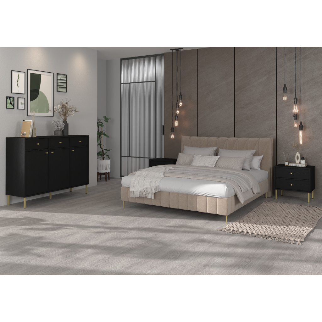 Mimoriadne zlaté kovové úchytky, dokonalé línie, atraktívny a moderný dizajn, to a oveľa viac je typickým znakom komody YEDDO 2 2F2S / čierna. Komoda stojí na vysokých kovových zlatých nožičkách, ktoré umožňujú robotickým vysávačom dostať sa do každého kúta. Komoda je tiež vyrobená z kvalitného a odolného materiálu s ABS hranami, vďaka čomu je praktickou voľbou do každej domácnosti.