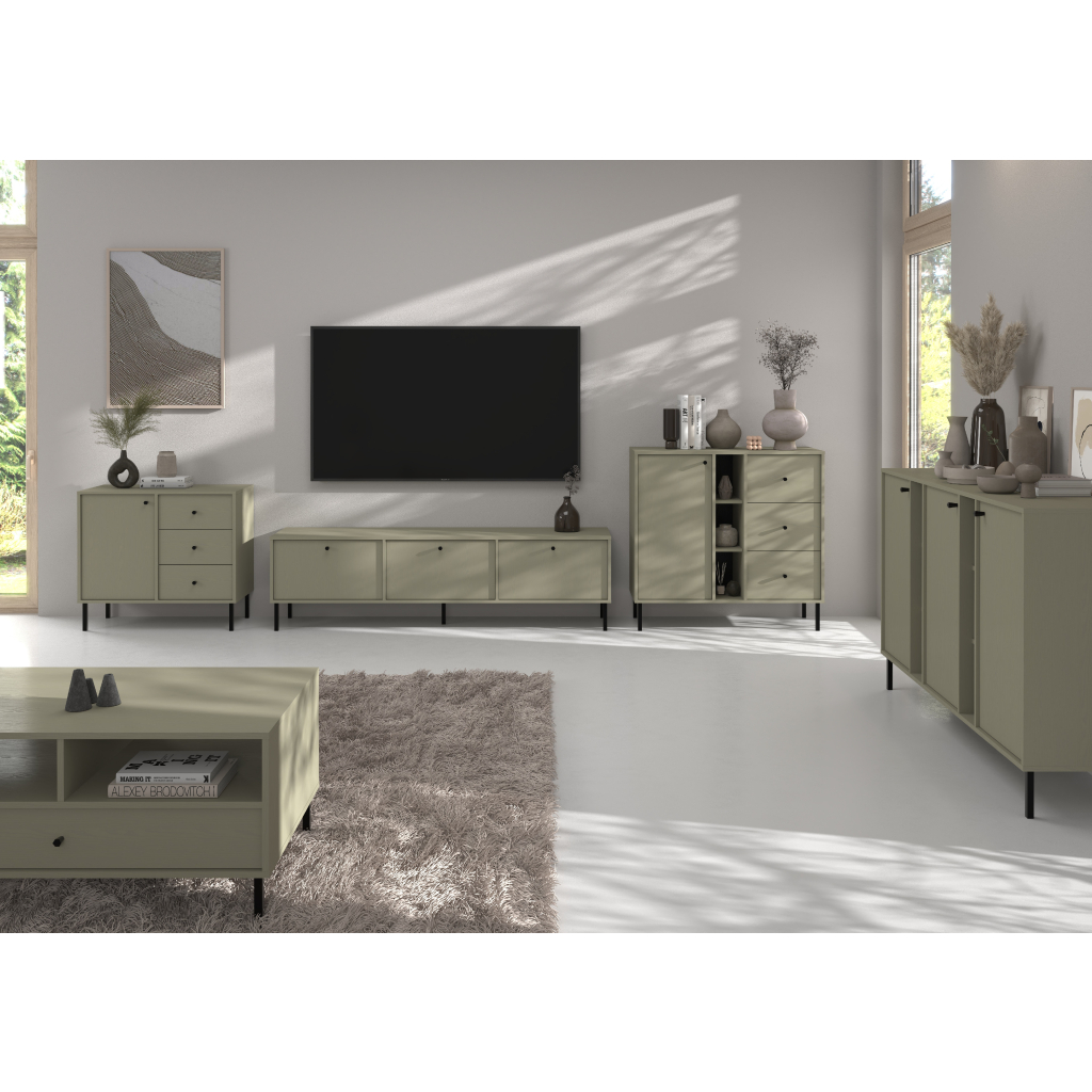 Moderné čierne kovové úchytky, dokonalé línie, atraktívny a atraktívny dizajn, to a oveľa viac je typickým znakom komody YEDDO 2 3F / eukalyptus. Komoda stojí na vysokých kovových čiernych nožičkách, ktoré zaručujú robotickým vysávačom dostať sa do každého kúta. Komoda je tiež vyrobená z kvalitného a odolného materiálu s ABS hranami, vďaka čomu je praktickou voľbou do každej domácnosti.
