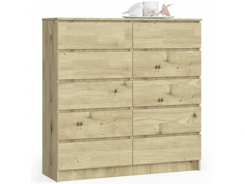 Komoda v dekore dub sonoma disponuje dostatočným úložným priestorom, ktorý poskytuje miesto pre uskladnenie rôznych vecí, ako sú oblečenie, knihy, alebo dokumenty. Veľké zásuvky sú vyrobené z pevných materiálov a sú vybavené kovovými výsuvnými mechanizmami, čo zaručuje ich spoľahlivú a dlhodobú funkčnosť.