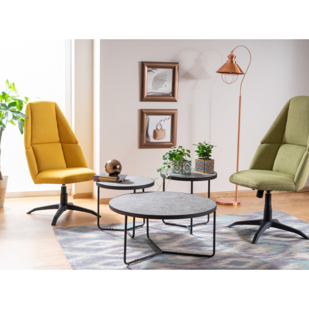 Sada konferenčných stolíkov DEMETER, je vhodnou voľbou do každej modernej domácnosti, vďaka svojmu neodolateľnému vzhľadu, unikátnemu dizajnu a mimoriadnemu prevedeniu. Stolíky sú vyrobené z kvalitného materiálu a ponúkajú nielen nádherné kovové nožičky, ale aj vrchnú časť stolíkov s efektom betónu. Tak už viac neváhajte a vyberte si sadu unikátnych konferenčných stolíkov DEMETER, vďaka čomu budete mať v obývacej izbe dostatok miesta na odkladanie vecí. Nábytok je dodávaný v demonte.