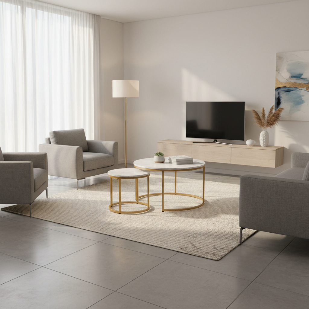 Sada konferenčných stolíkov DION | zlatá / efekt biely mramor
