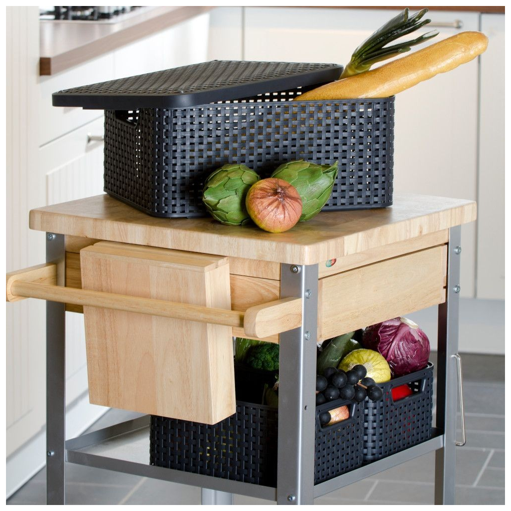 Úložný kôš je vyrobený z kvalitného plastu, ktorý sa používa najmä vďaka svojej ľahkosti, odolnosti, tvarovateľnosti a nízkej cene. Materiál je ľahko umývateľný a odolný voči poškodeniu, je obľúbený kvôli nízkej hmotnosti.