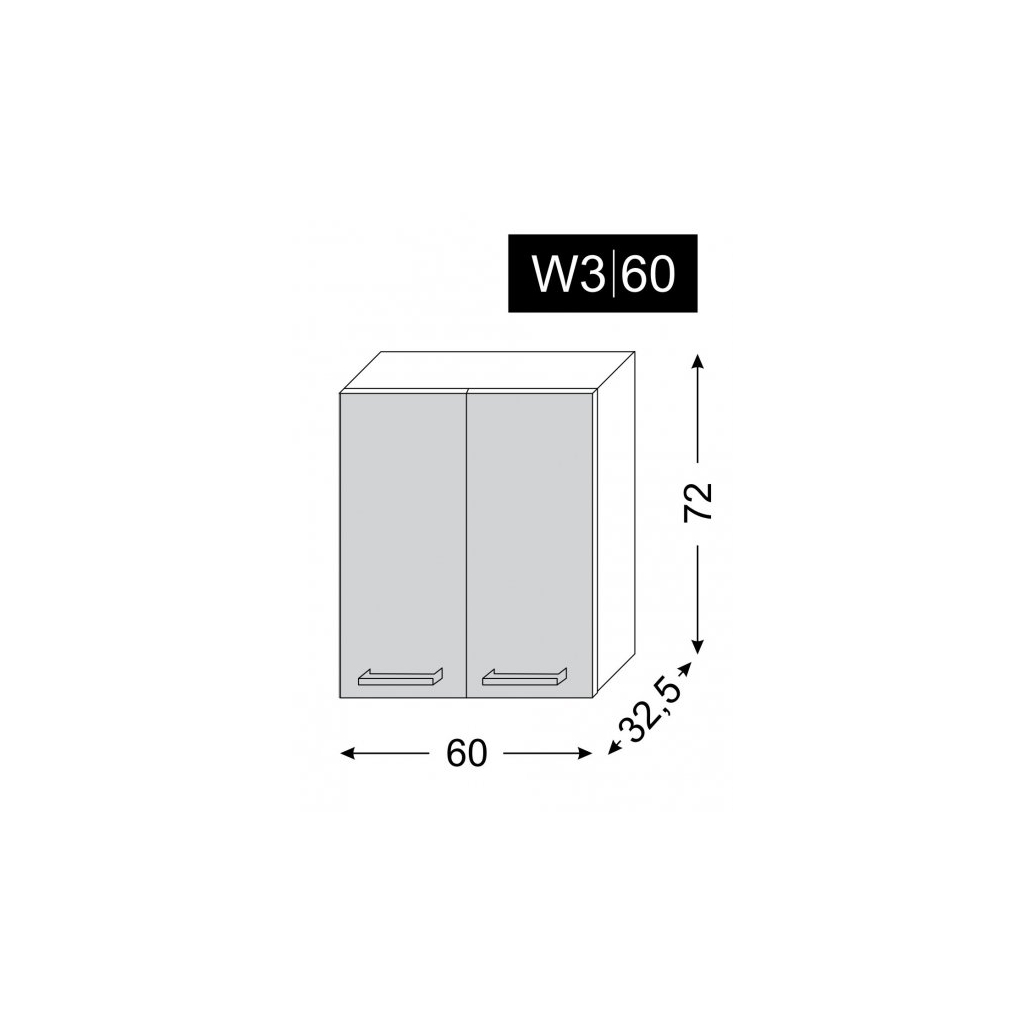 Horná skrinka W3/60 má vnútri 2 police. Na skrinku je použitý korpus v hrúbke 18 mm, na výber je z 3 farieb - biela, grey a lava. Úchyty sú zarátané v cene skrinky, v balení je úchyt Reling. Ak máte záujem o iné úchyty, dajú sa doobjednať z našej ponuky úchytov.