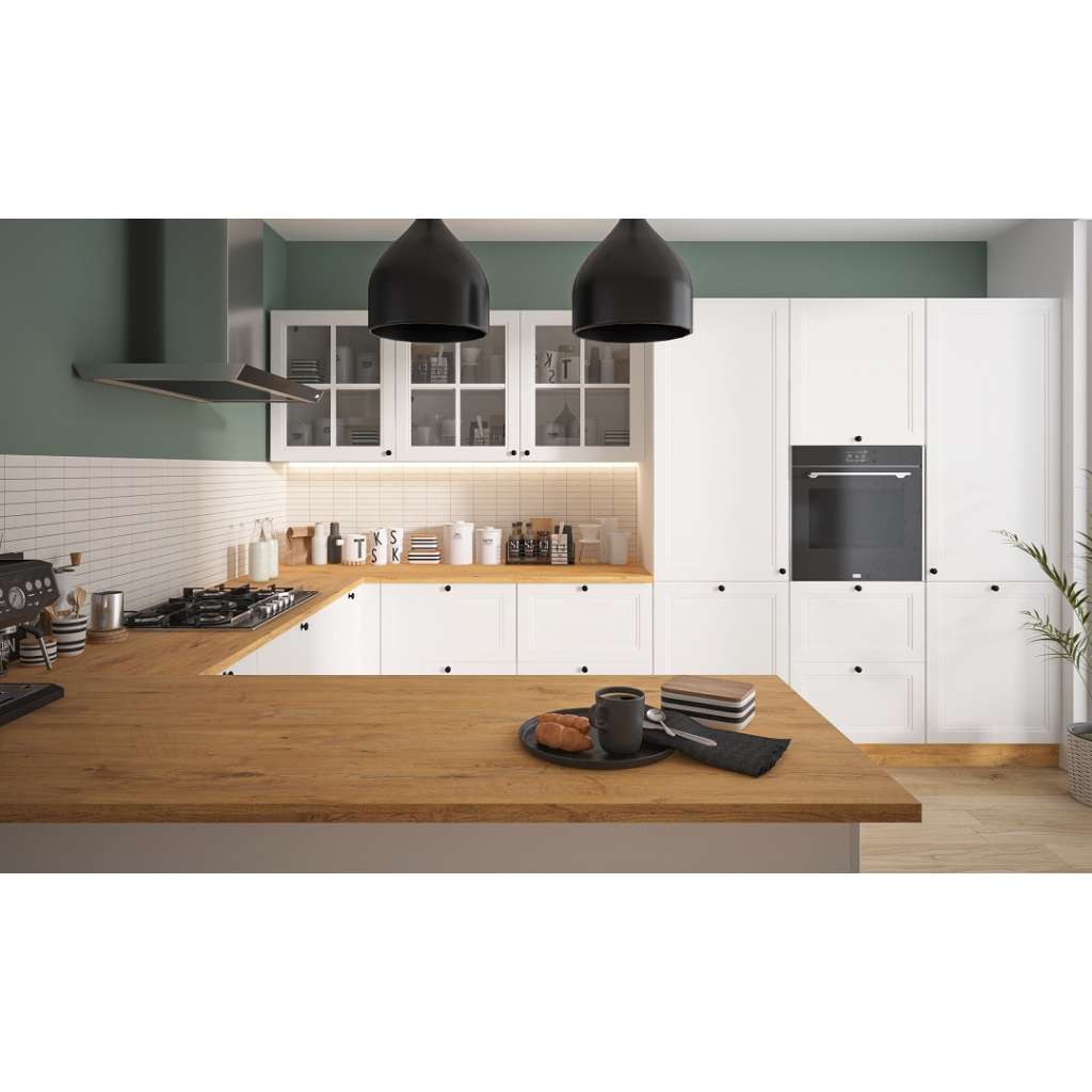 Jedinečná kuchynská linka Forli očarí všetkých, ktorí oceňujú kombináciu klasického a moderného štýlu. Dvierka zdobí decentné dvojité frézovanie. Neprehliadnuteľné sú ani kuchynské skrinky so sklom a ozdobnými lištami, ktoré dodajú Vašej kuchyni vzdušnosť a eleganciu. Kuchynská linka Forli je dostupná len v matnom prevedení, dvierka sú vyrábané v najvyššej kvalite - lakovaním. Farebné prevedenie korpusu si môžete zvoliť zo 4 odtieňov - biela, grey, lava a dub artisan. Farebný odtieň dvierok si môžete zvoliť z množstva odtieňov, dostupné sú 2 kompletné vzorkovníky farieb - RAL a ICA. Svoju vysnívanú kuchynskú linku si môžete vyskladať zo širokej ponuky kuchynských skriniek Forli.