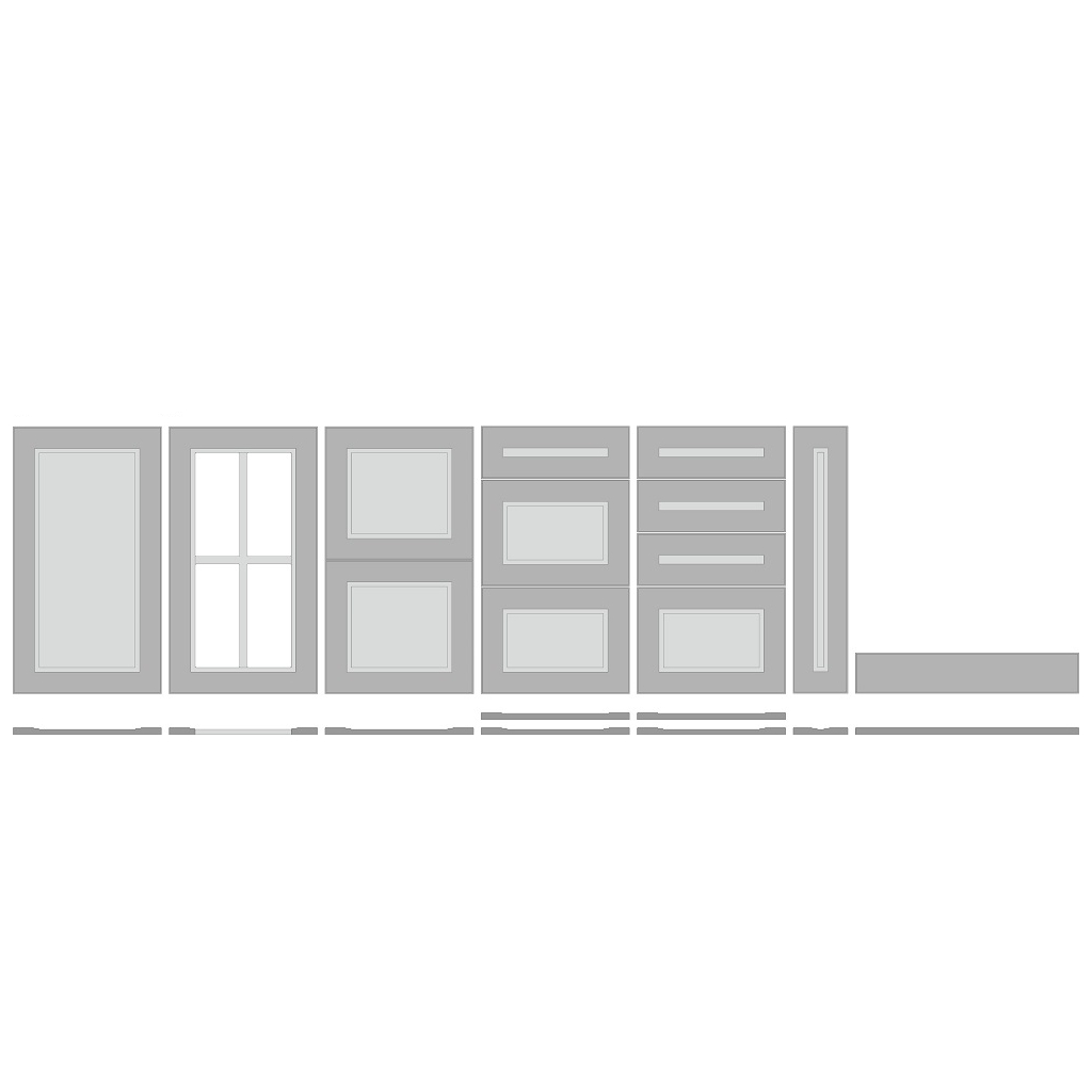 Dvierka najvyššej kvality sú vyrobené z 19 mm MDF, ktorá je lakovaná šiestimi vrstvami, 3x vrstva základu a 3x vrstva laku. Farebný odtieň dvierok si môžete vybrať z 2 vzorkovníkov farieb: