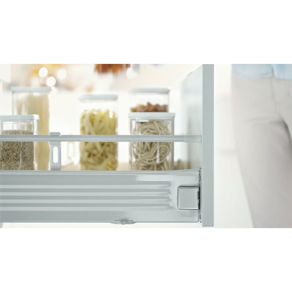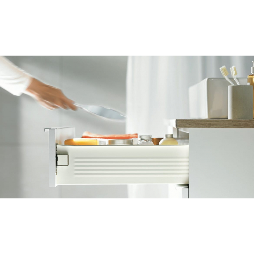 Zásuvkové skrinky majú kovové koľajnicie BLUM s kovovými bočnými lištami na zásuvkách, k tejto verzii je možnosť doobjednania systému AIRTIC (tlmené dovieranie).