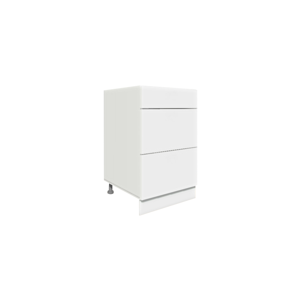 Spodná skrinka D3M/50 má 3 zásuvky. Na skrinku je použitý korpus v hrúbke 18 mm, na výber je zo 4 farieb - biela, grey, lava a dub artisan. Nohy (podstavce) sú plastové, čiernej farby, výškovo nastaviteľné.