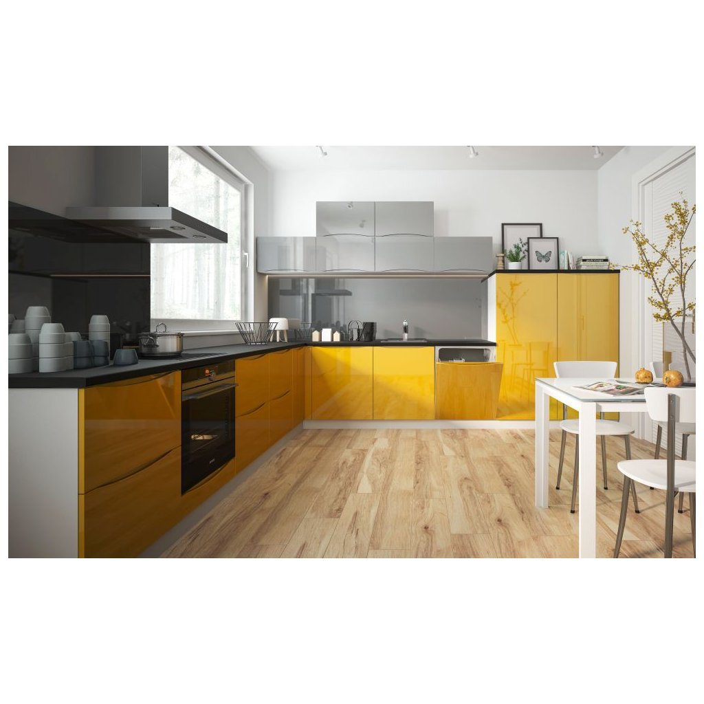 - dvierka skrinky ( 19 mm ) sú vyrobené z materiálu MDF, ktorý je lakovaný