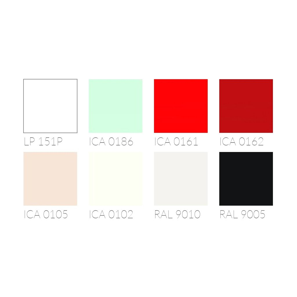| Farba: | Biela matná, Biela lesklá, Béžová, Čierna matná, Červená, Farebná, Fialová, Hnedá, Modrá, Oranžová, Ružová, Sivá, Sivá lesklá, Zelená, Žltá |