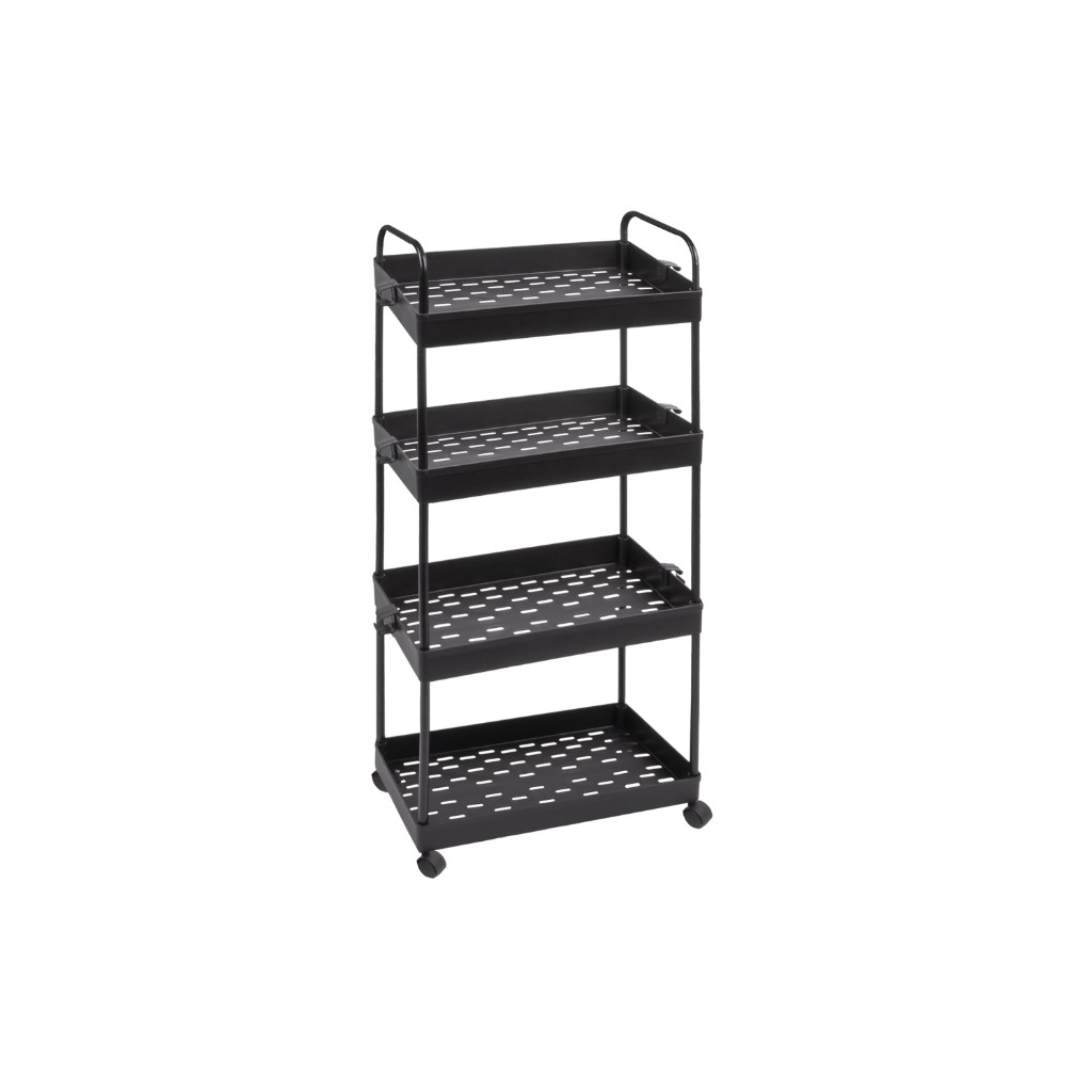 Regál AWD02041853 | čierna je vyrobený z kvalitnej ocele v kombinácii s plastom. Čistenie je veľmi jednoduché, stačí zotrieť navlhčenou handričkou.