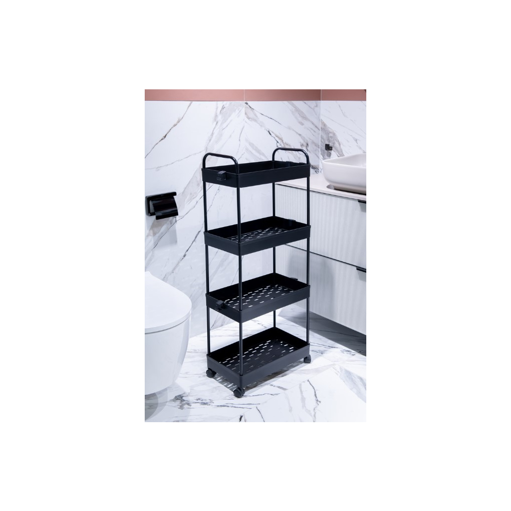 Moderný a praktický regál AWD02041853 v čiernej farbe je vhodný nielen do kúpeľne a vďaka trom policiam poskytne dostatok odkladacieho priestoru. Regál má 4 praktické kolieska. V balení je 6 plastových háčikov, ktoré si môžete ľubovoľne premiestniť podľa potreby.