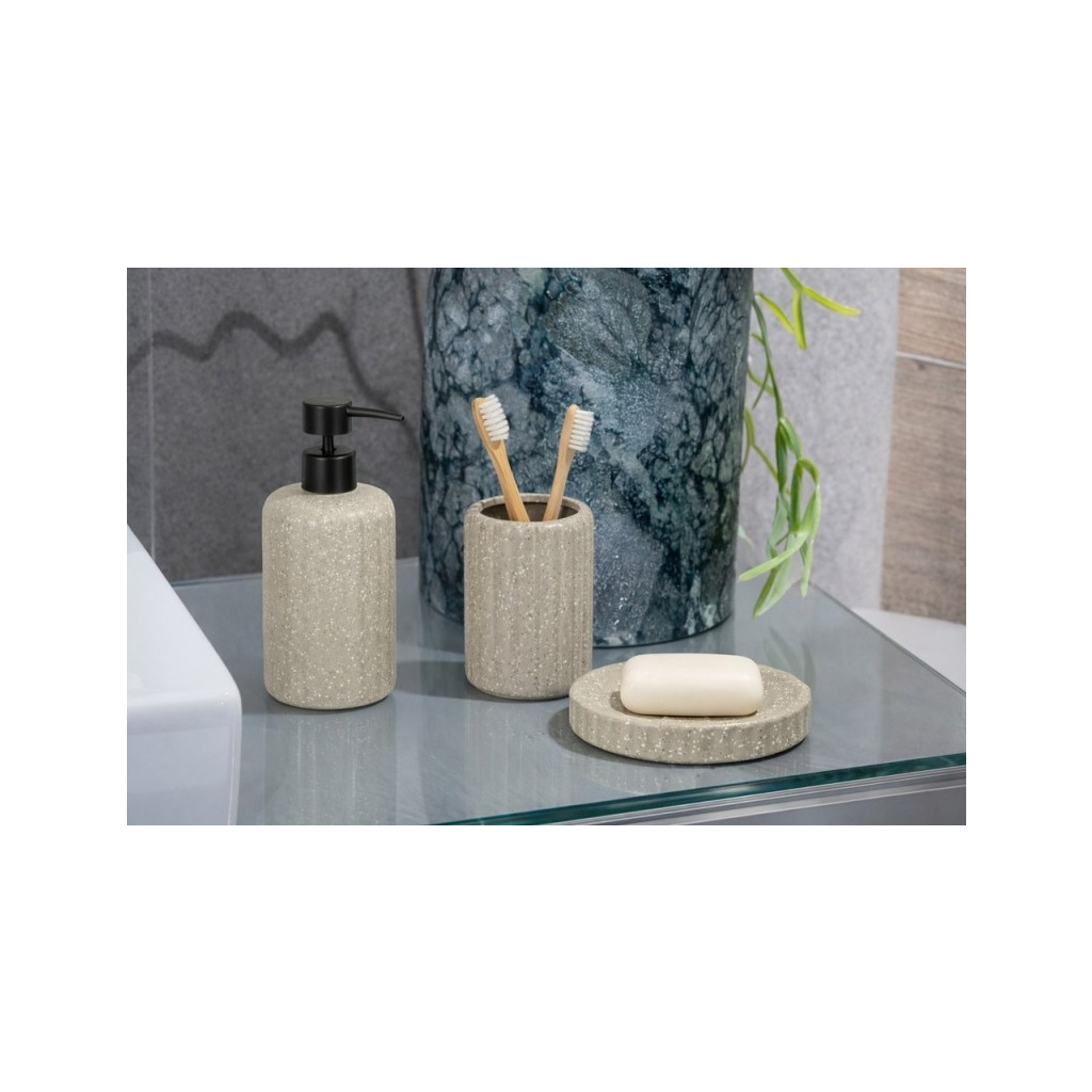 Mydelnička PERU | AWD02192029 je elegantný a praktický doplnok do kúpeľne v hnedom odtieni. Prírodná farebnosť a jemná štruktúra materiálu dodávajú výrobku teplý a dekoratívny vzhľad, vďaka čomu sa výborne hodí do interiérov inšpirovaných prírodou, boho štýlom, japandi alebo moderným minimalizmom. Pohár vytvára štýlový kontrast s kameninovým telom a umožňuje pohodlné používanie. Praktické využitie nielen v domácich kúpeľniach, ale aj v hoteloch či apartmánoch.