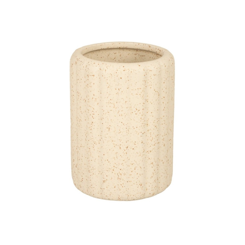 Jednou z hlavných predností pohára na kefky KENYA | AWD02192032 je jeho hladký povrch, ktorý zabraňuje usadzovaniu nečistôt. Kamenina je nielen príjemná na dotyk, ale aj veľmi nenáročná na údržbu. Táto vlastnosť je obzvlášť dôležitá v kúpeľni, kde sa často vyskytuje vlhkosť a zvyšky čistiacich prostriedkov. Matná povrchová úprava znižuje viditeľnosť odtlačkov prstov a šmúh. Pohár na kefky kombinuje elegantný vzhľad s nadčasovým dizajnom, vďaka čomu sa hodí do rôznych štýlov interiéru. Jemná krémová farba pôsobí moderne a vkusne. Bez problémov zapadne do kúpeľní v škandinávskom, minimalistickom, industriálnom aj klasickom štýle. Neutrálna farebná kombinácia z neho robí decentný, no zároveň výrazný doplnok každej kúpeľne.