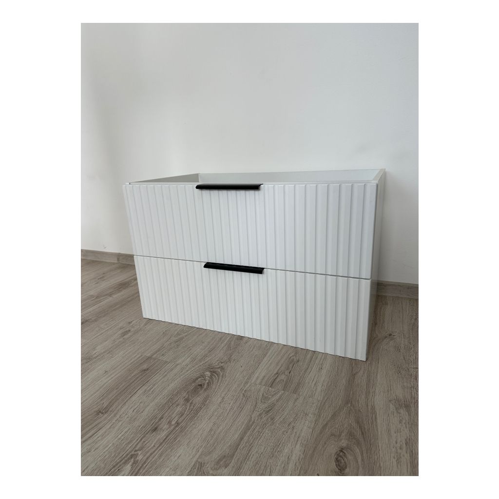 Skrinka pod umývadlo DELA je v modernej bielej farbe dodá vašej kúpeľni svetlý a svieži vzhľad. Skrinka pod umývadlo má dve priestranné zásuvky. Minimalistické prevedenie oživujú vertikálne drážkované čelá, ktoré sú moderné a žiadané.