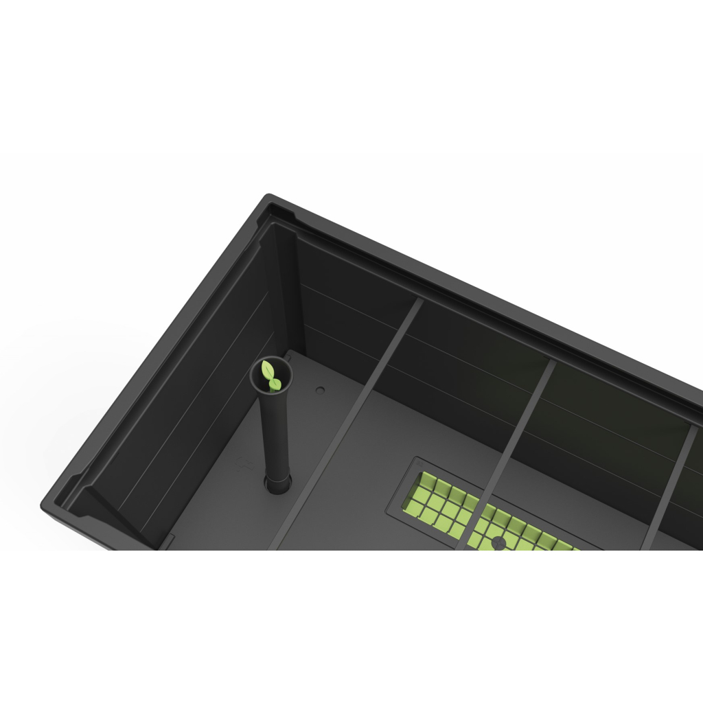 Inteligentný a dizajnový kvetináč GARDEN PLOT je väčšia verzia kvetináča so zabudovaným zavlažovacím systémom, ktorý uľahčuje pestovanie rastlín. Praktický indikátor hladiny vody pomáha predchádzať nadmernému zalievaniu. Súčasťou kvetináča je aj praktická polica na odkladanie záhradného príslušenstva.