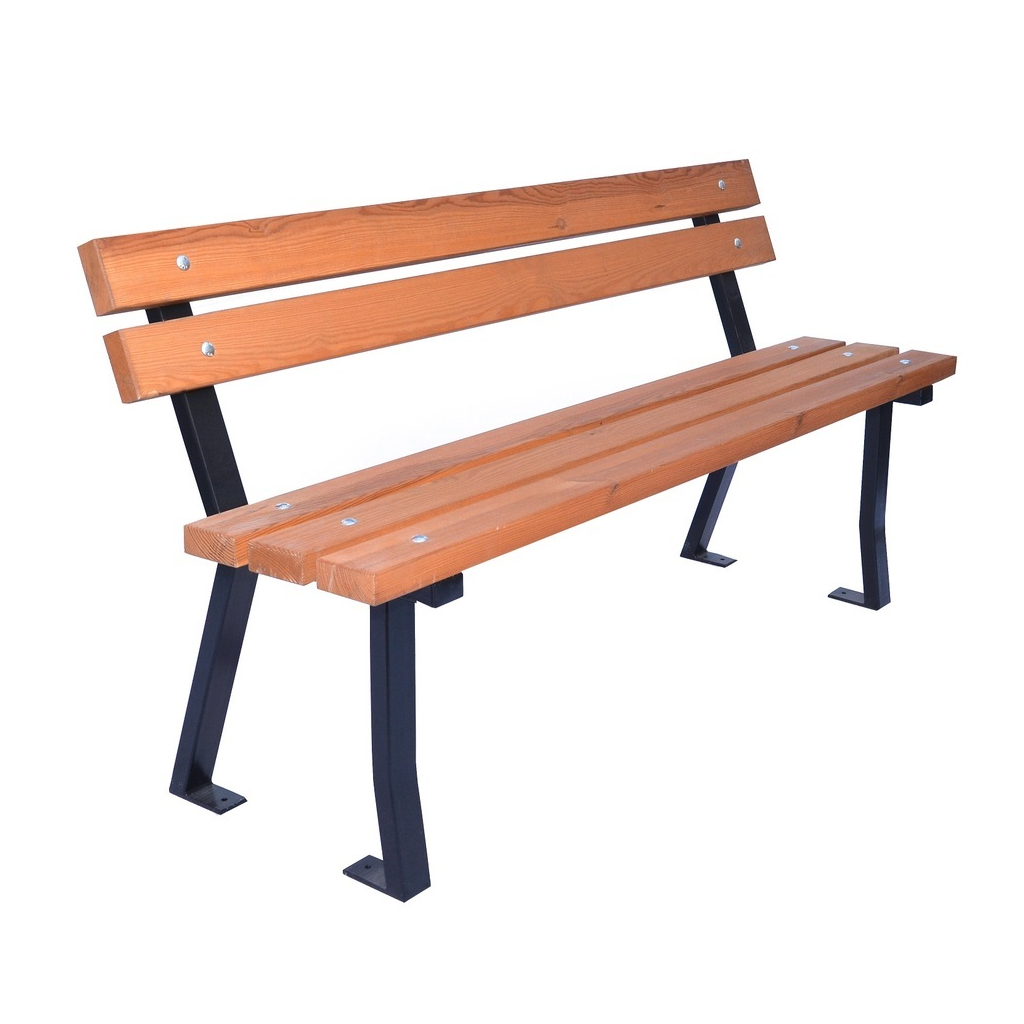 Kovová lavica 3848 vo veľmi peknom prevedení. Vyrobená je z borovicového dreva a železnej konštrukcie. Lavička je vhodná do parkov či záhrad. Lavička je určená pre 3 osoby, maximálna nosnosť je 270 kg. Ak si vyberiete túto lavicu, zakúpite si kvalitný produkt s dlhodobou životnosťou. Vďaka možnosti priskrutkovania pätiek do zeme sa zvyšuje bezpečnosť používania.