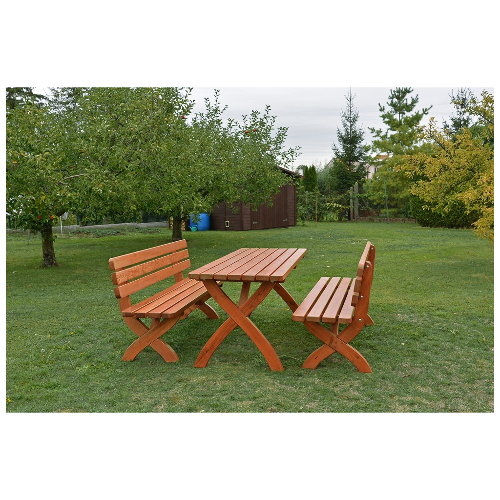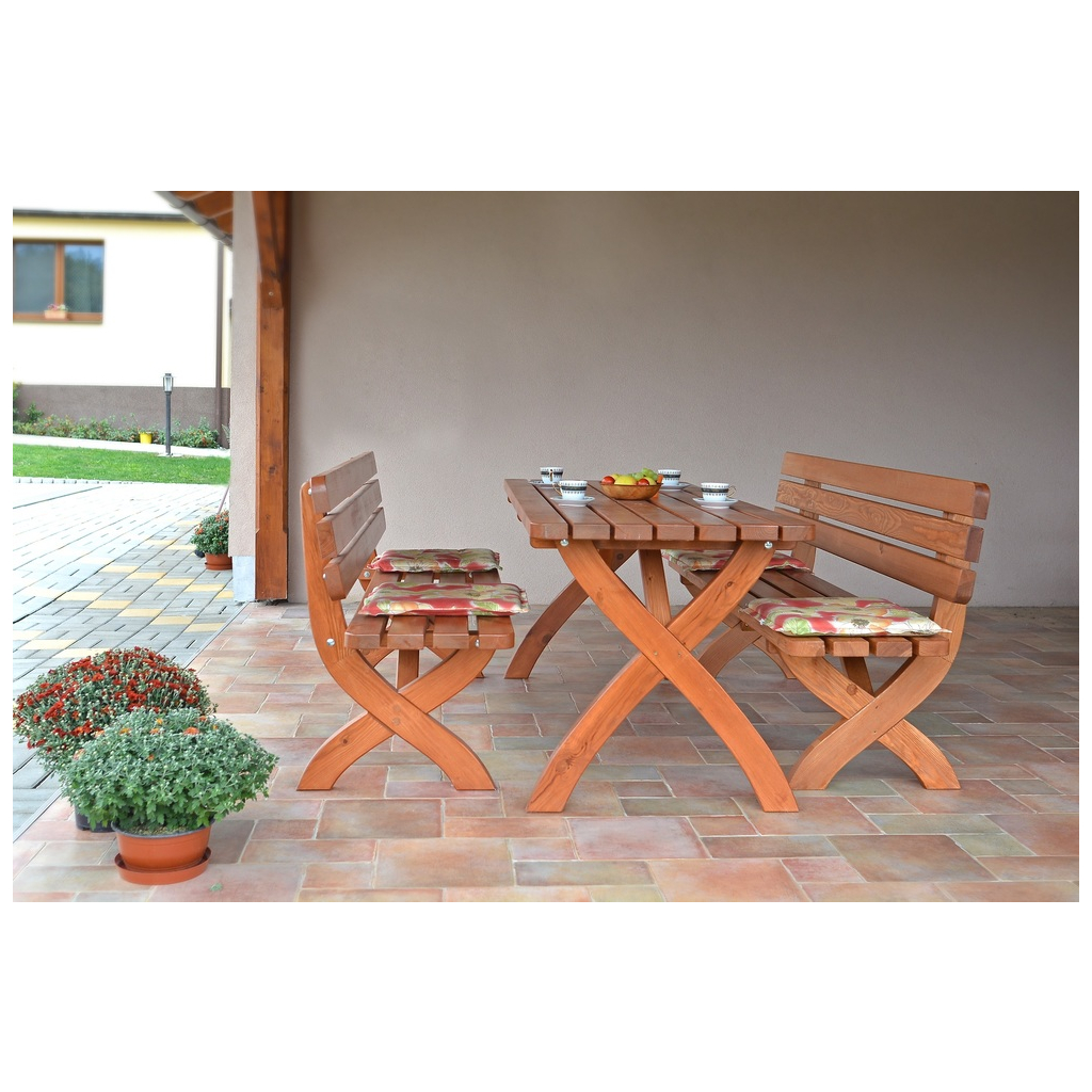Masívna lavica STRONG z borovicového dreva je lakovaná, lakovaný povrch zaručuje ochranu a dlhšiu životnosť dreva. Výhodou je odolnosť a veľká stabilita výrobku. K lavici sa skvelo hodí záhradný stôl STRONG 180.