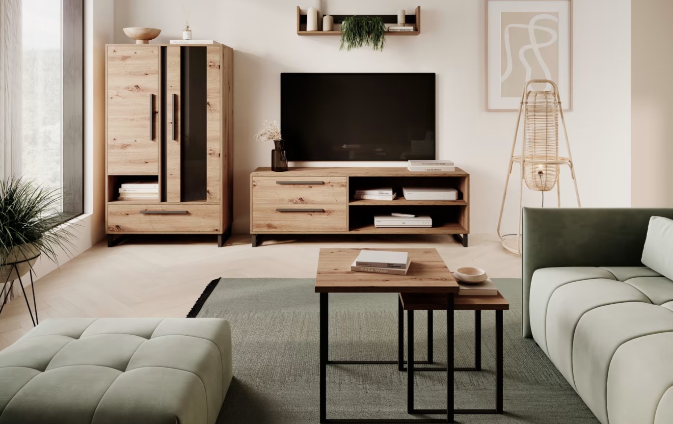 Získajte štýlový a funkčný nábytok pre vašu obývačku s našou loftovou zostavou ARIA v dekore dubu artisan. S jej vysokými nohami pridávate do priestoru vzdušnosť a moderný dizajn. Zostava ARIA je navrhnutá s dôrazom na praktickosť a estetiku, ponúka dostatok úložného priestoru pre organizáciu vašich vecí. Teplý odtieň dekoru dub artisan vytvára príjemnú atmosféru a kontrastuje s kovovými nohami. Zariaďte si obývačku štýlovo.