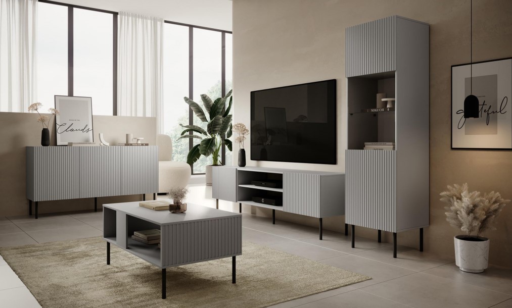 Moderná kolekcia nábytku ASHEN, už svojím názvom naznačuje, že ide o kolekciu nábytku vyrobenú v nádhernom šedom farebnom prevedení, v kombinácii s čiernou farbou. Zostava je vyrobená z kvalitného materiálu, ktorý zaručuje dlhú trvanlivosť. Charakteristickou črtou kolekcie sú krásne čierne kovové nožičky, nadčasový vzhľad, zaujímavé ryhovanie na predných častiach nábytku a jedinečné prevedenie. Tak už viac neváhajte a vyberte si modernú kolekciu nábytku ASHEN, ktorá predstavuje jedinečnosť a výnimočnosť.